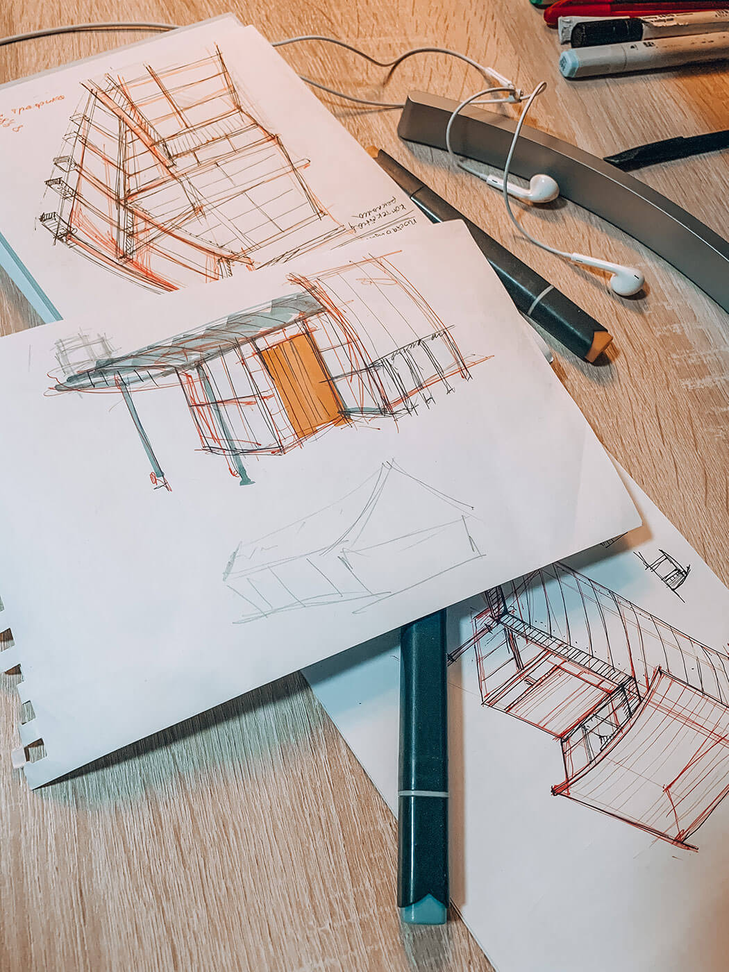 Формообразование и тематика дома взяты из корабельного дела. Заказчик работает в этой сфере, и ему хотелось подчеркнуть в дизайне род своей деятельности.