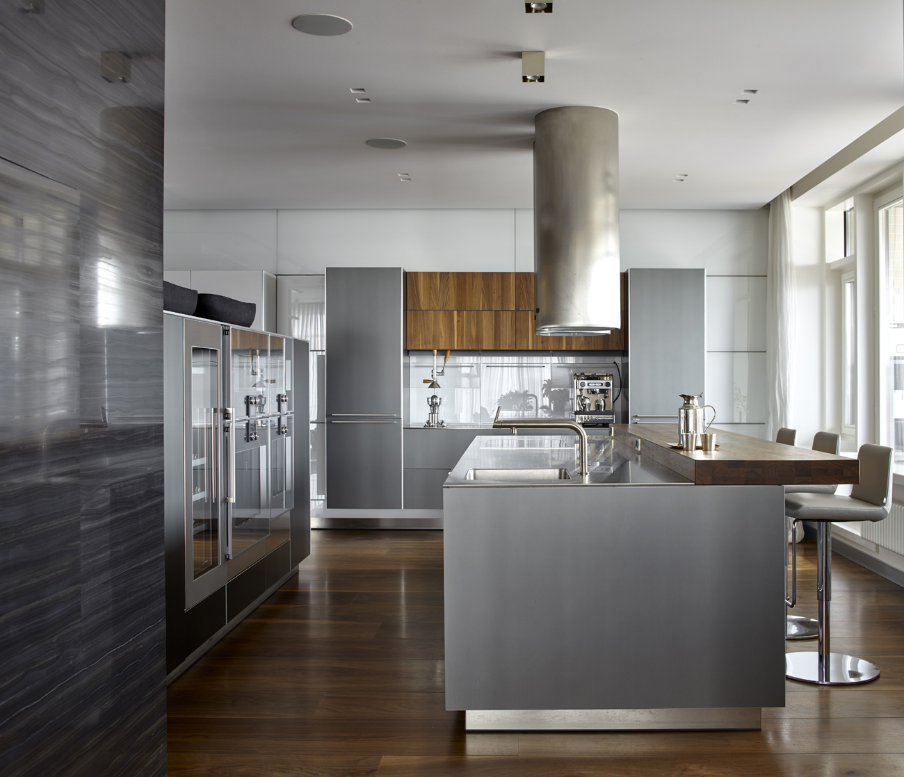 Архитектору удалось не только выстроить взаимодействие внешнего и внутреннего содержания, но и сохранить столь важную для подобного жилья атмосферу приватности и респектабельности.