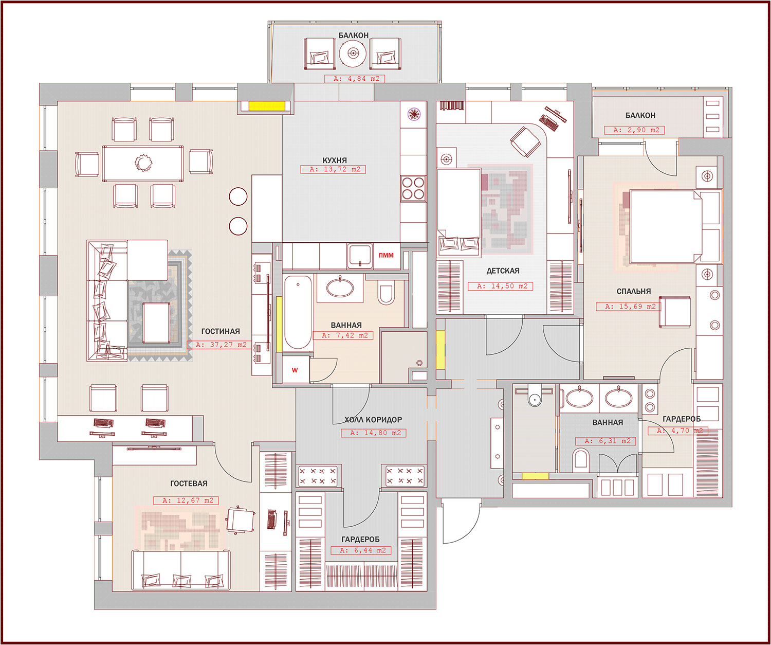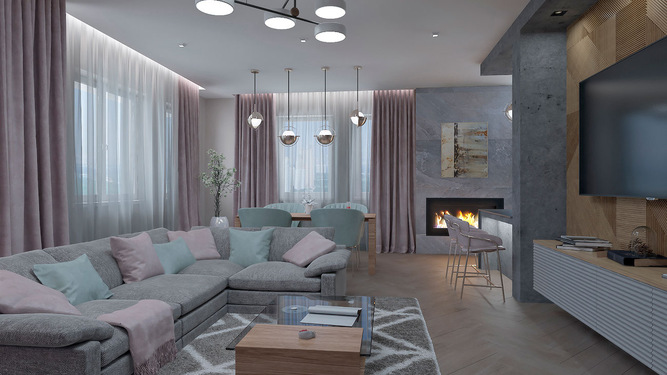 В задаче архитектора было объединить две квартиры в одну и выделить две зоны: общую и приватную. Квартира с панорамным видом на лес и поле, в дизайне передано созвучие внутреннего пространства квартиры и просторов природы.