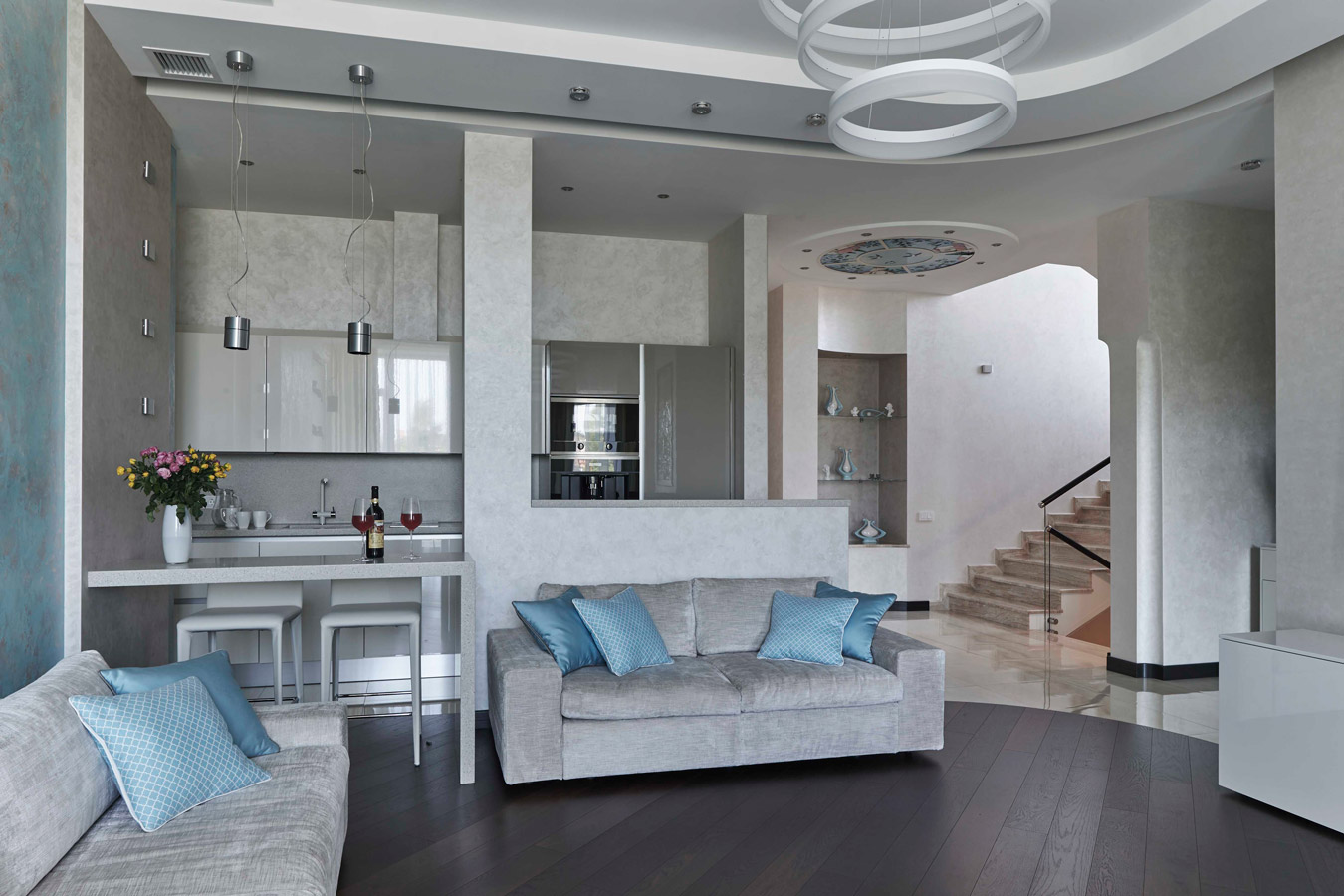 Заказчики хотели, чтобы их дом был непохож на другие, поэтому дизайнерам сразу стало ясно, что речь пойдет не об одном определенном стиле. Исходя из этого, для оформления интерьера выбрали необычный микс хайтека и кантри со средиземноморскими мотивами — любимой темой хозяев.