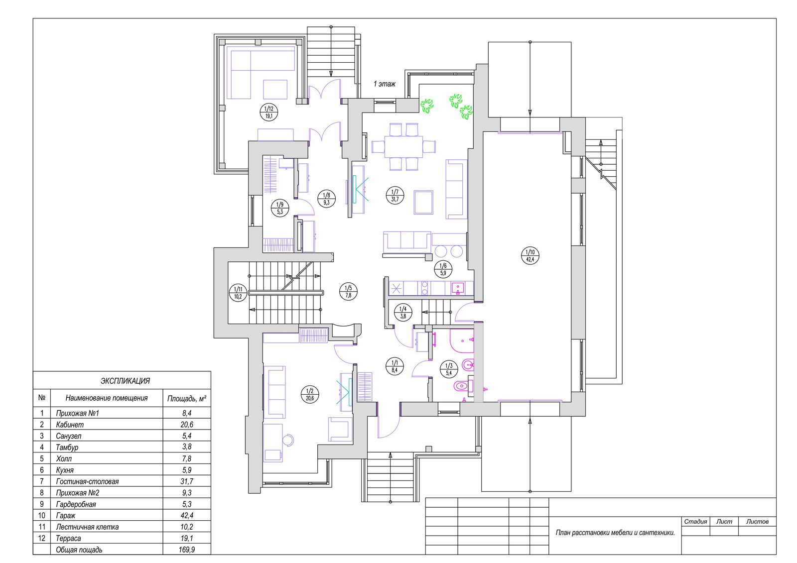 Умело используя сочетания различных стилей, дизайнерам удалось создать неповторимый персонализированный интерьер, комфортный для хозяев. При переосмыслении существующего проекта двухуровневого коттеджа и понимая, что для всех пожеланий заказчиков просто не хватит места, дизайнеры решили добавить цокольный этаж, расширили эркер для лестницы и присоединили к дому две открытые веранды. Таким образом, удалось максимально увеличить жилую площадь дома, так необходимую хозяевам.