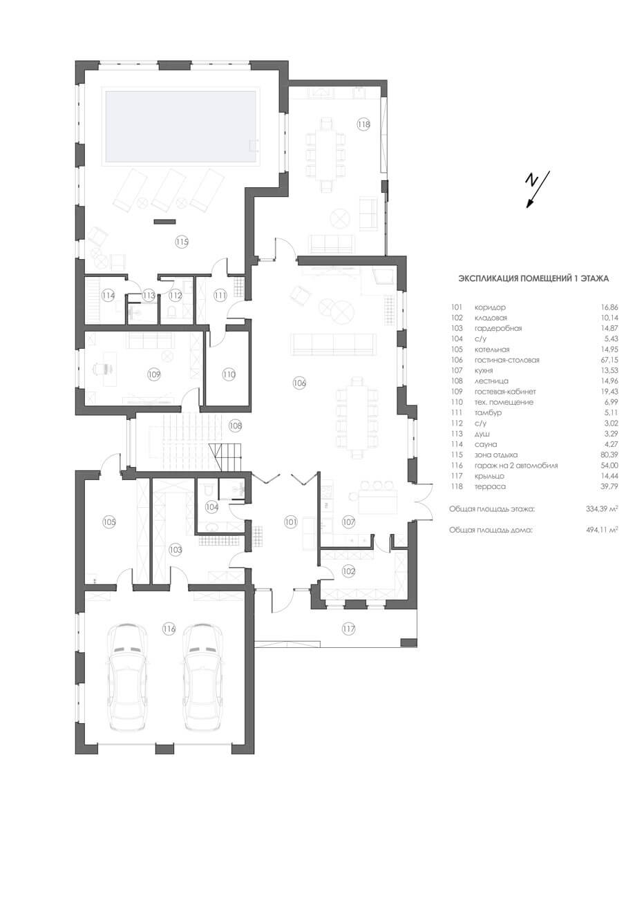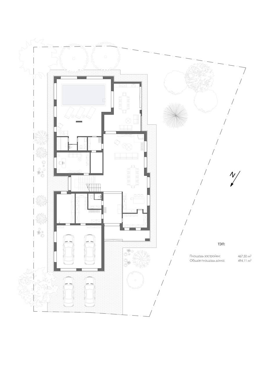 Общая площадь дома – 494,11 м²