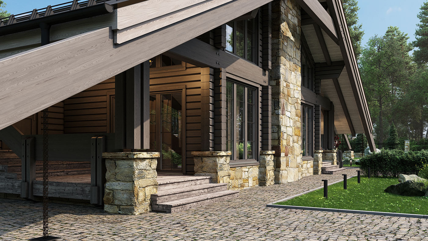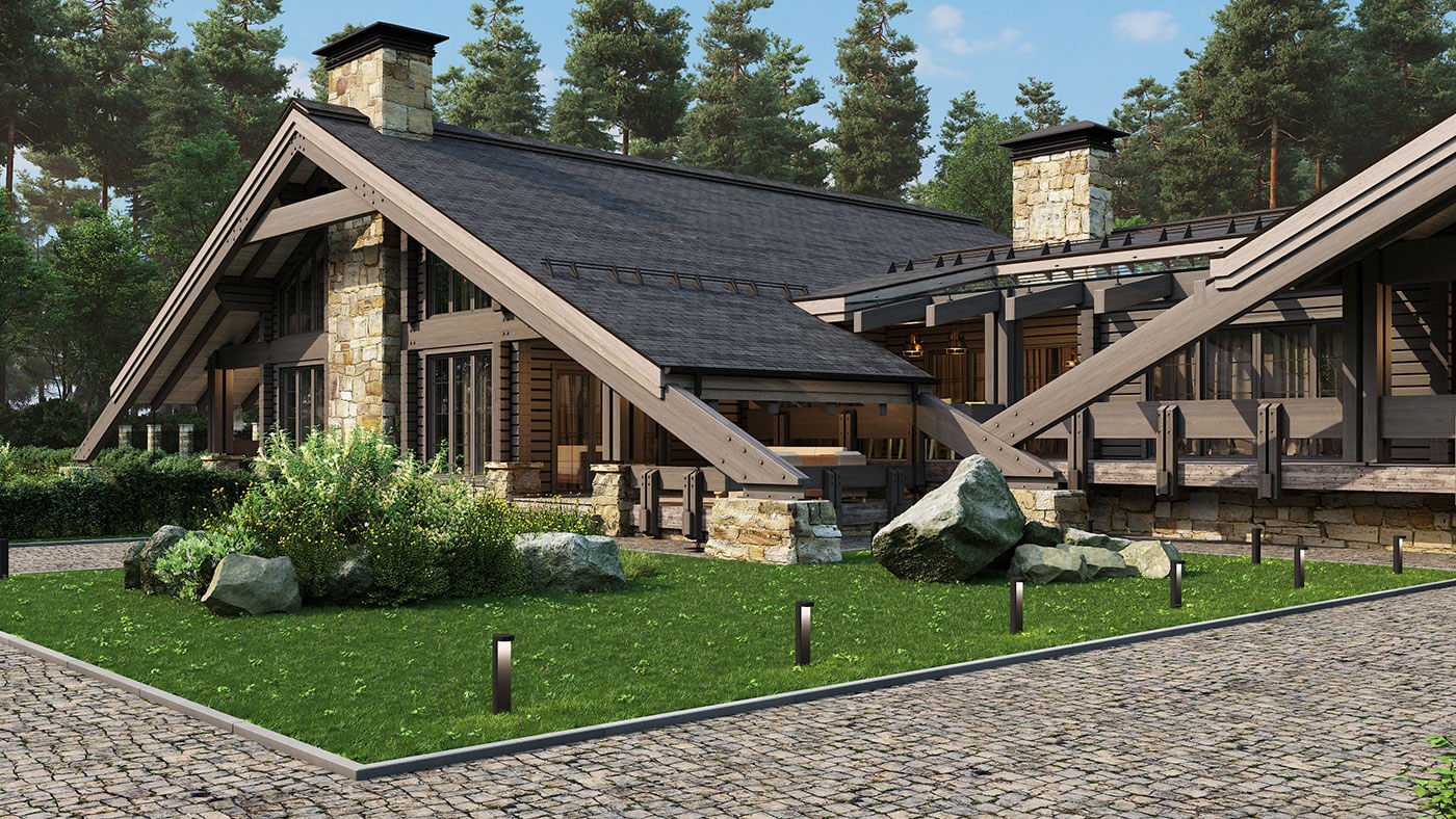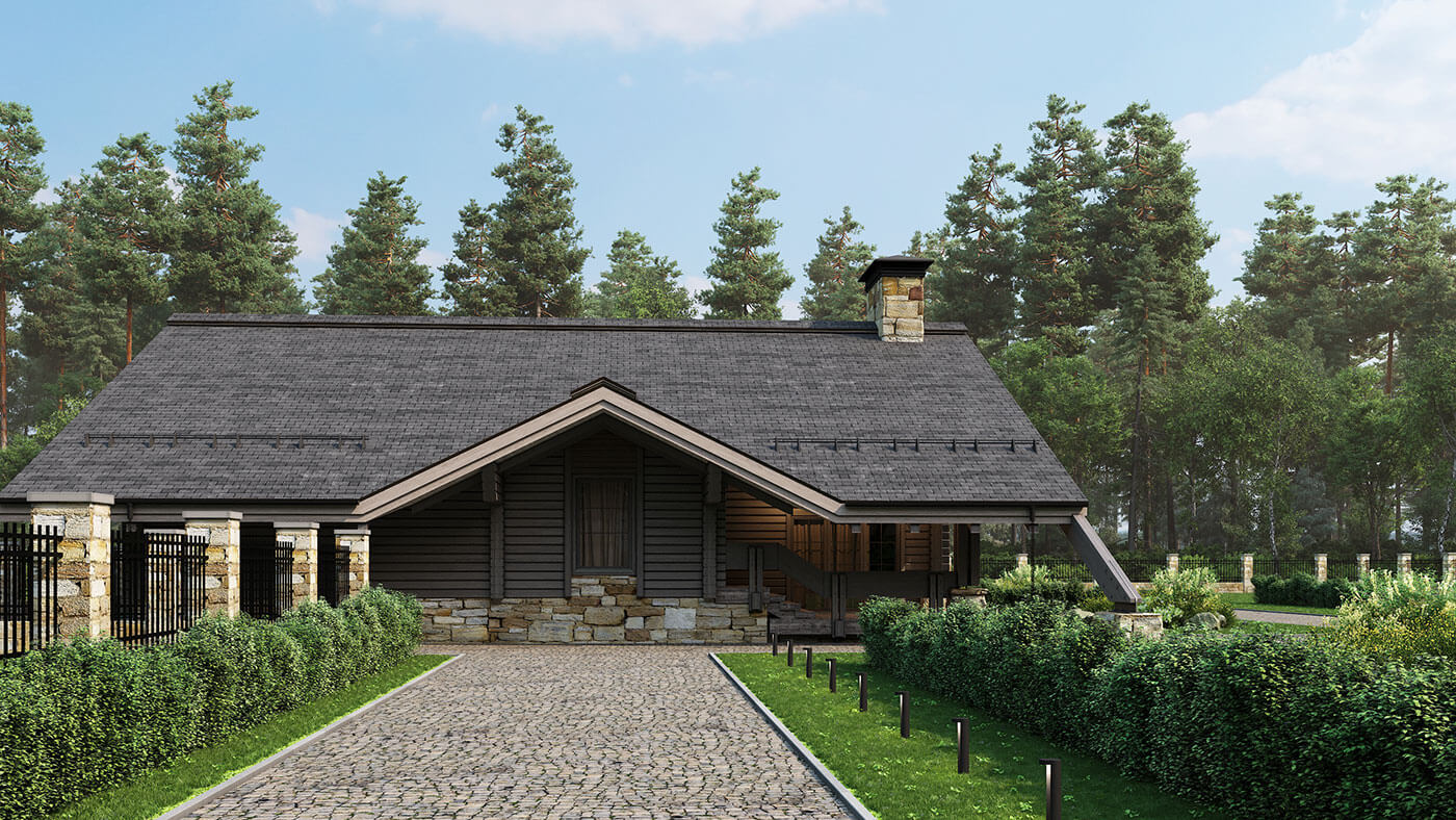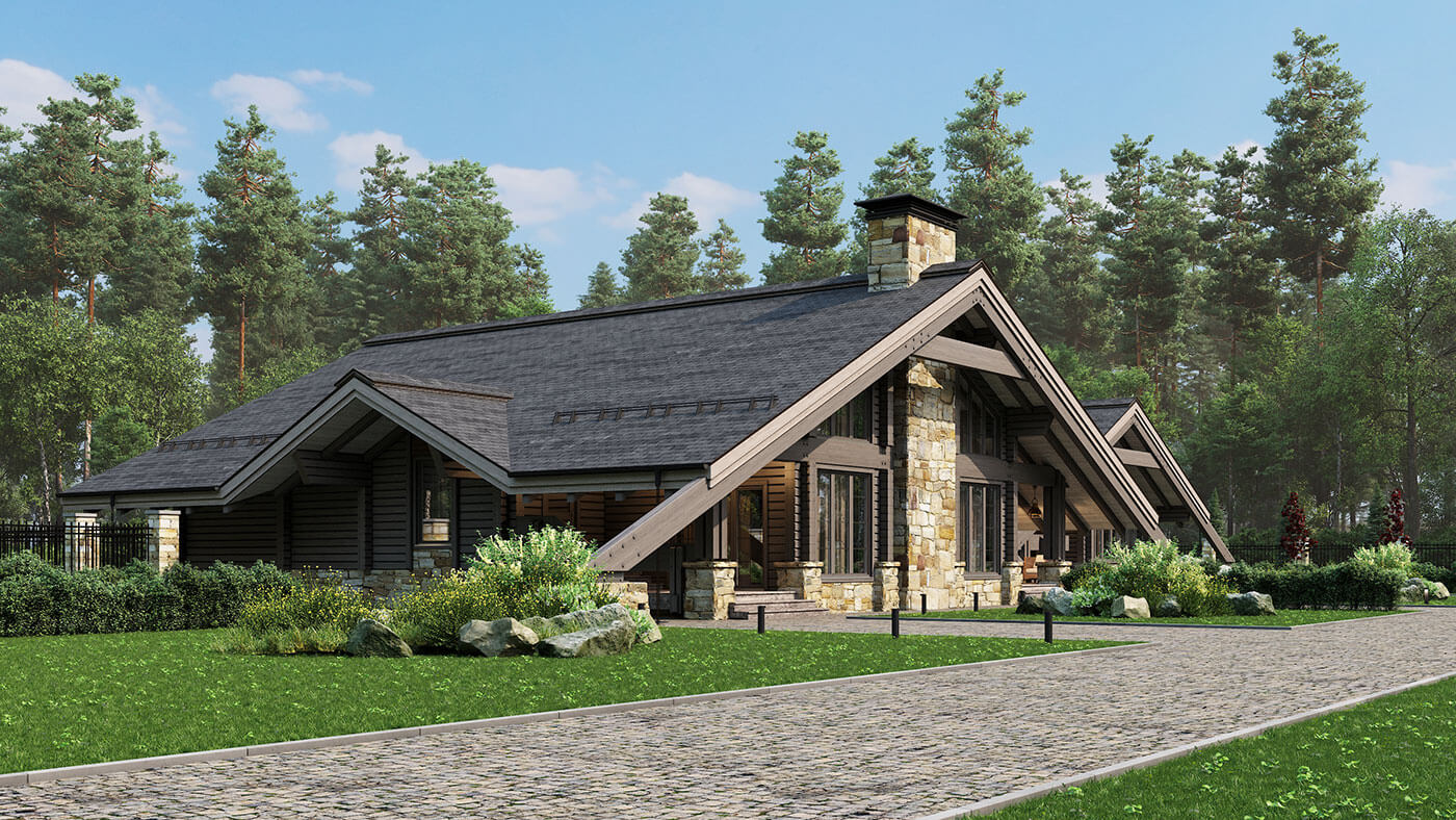 Жилой дом из клееного бруса «Пирамида плюс» — это большой многофункциональный комплекс, предназначенный как для проживания, так и активного отдыха. Помимо спален, жилых комнат и помещений общего назначения в нем есть большая спа-зона с хаммамом и сауной, спортивный зал, большой бассейн и несколько террас различного назначения. Общая площадь внутренних помещений — 370 кв.м; общая площадь террас — 100 кв.м.
