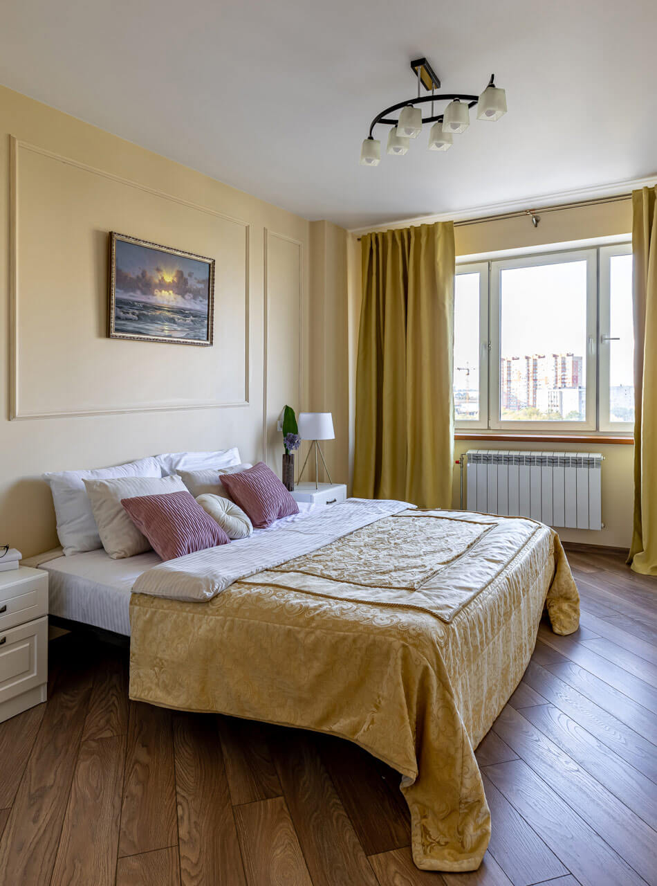 Двухкомнатная квартира площадью 82 м2 находится в наукограде Московской области, в монолитном многоэтажном доме.