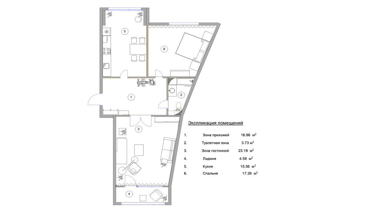 Основное пожелание хозяйки — отсутствие открытой планировки, изолированность каждого помещения и организация фитнес-зоны.