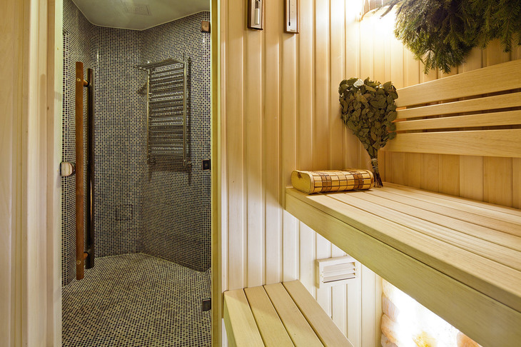 Помещение русской бани с душевой и комнатой отдыха