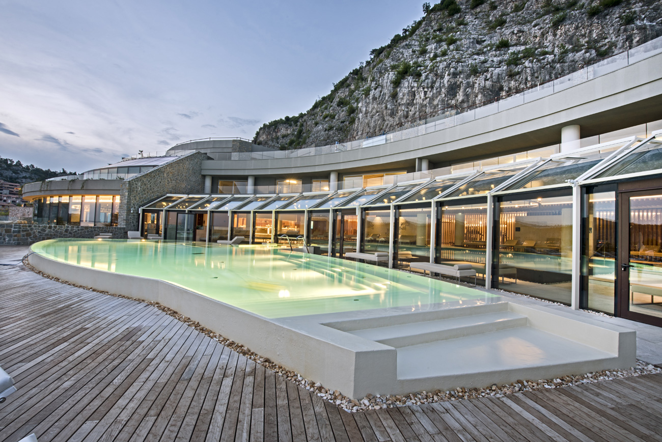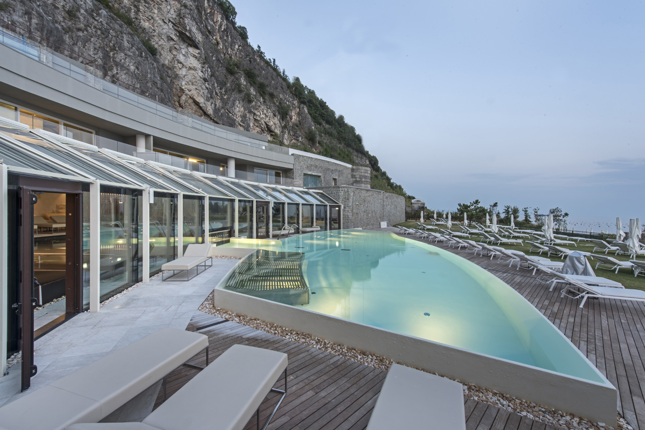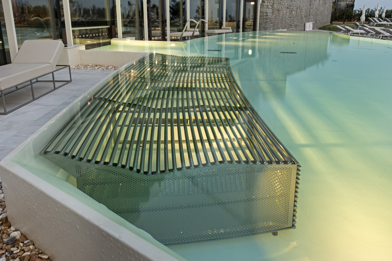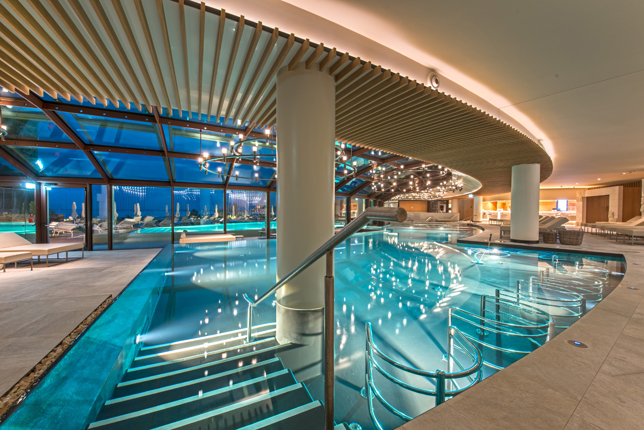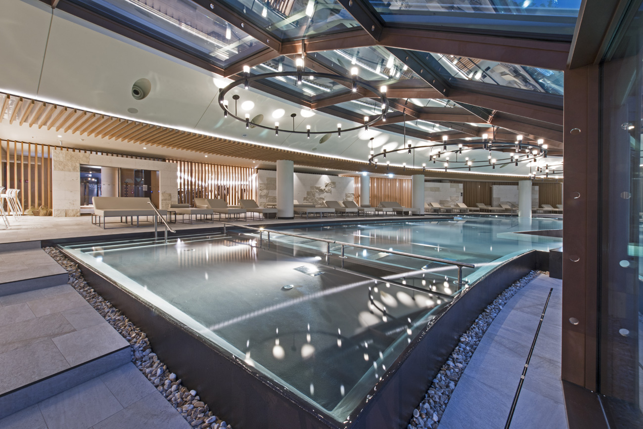 В спа-зоне можно увидеть огромный бассейн. Здание, где он находится, было построено за несколько лет до строительства сегодняшнего спа, на основе другого проекта. Поэтому проектировщики бассейна должны были разработать отличную инженерную систему, чтобы адаптировать строительные чертежи бассейна к ранее существовавшим условиям.