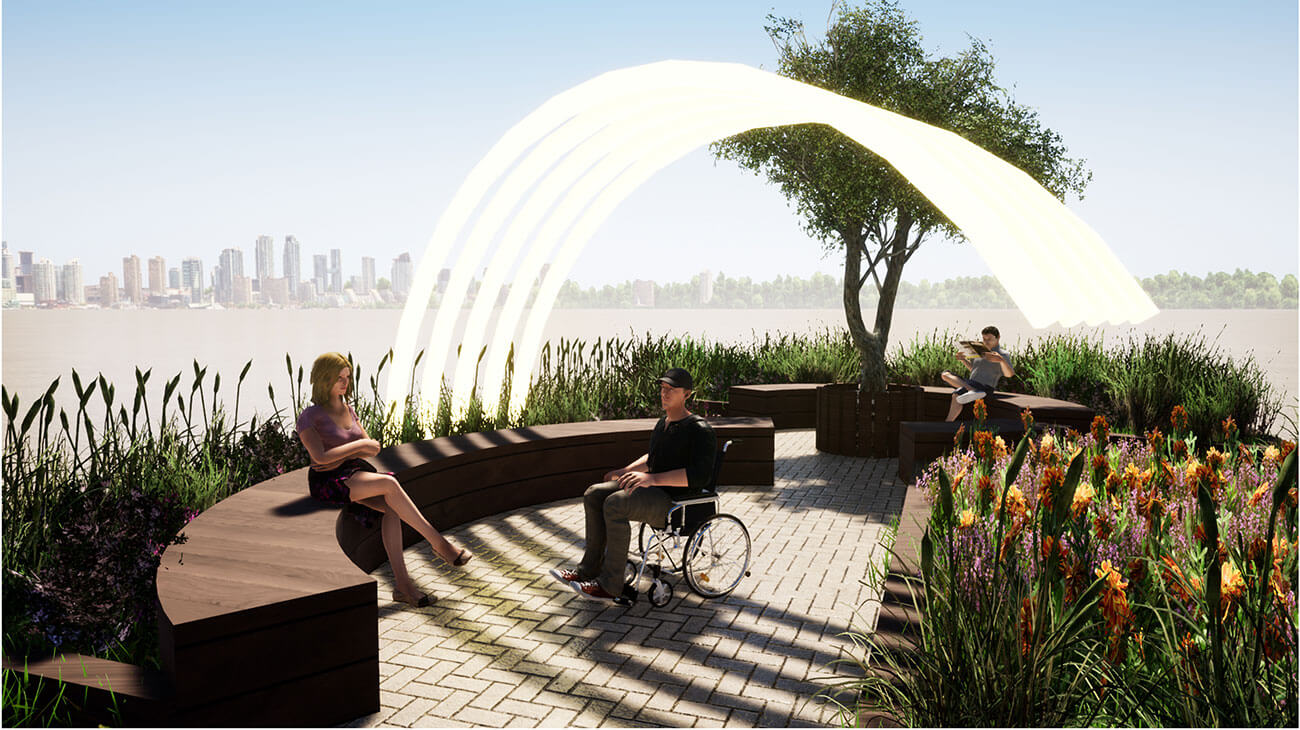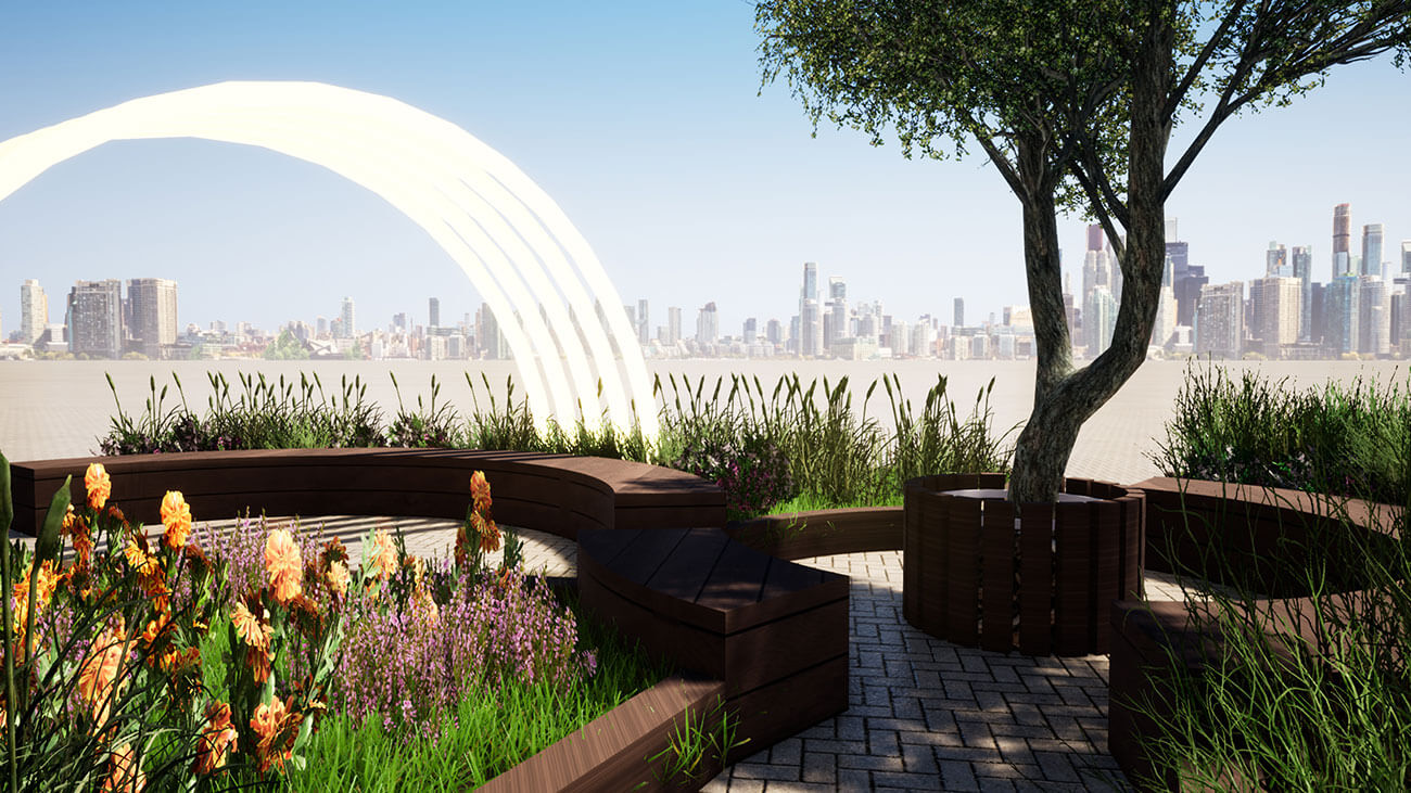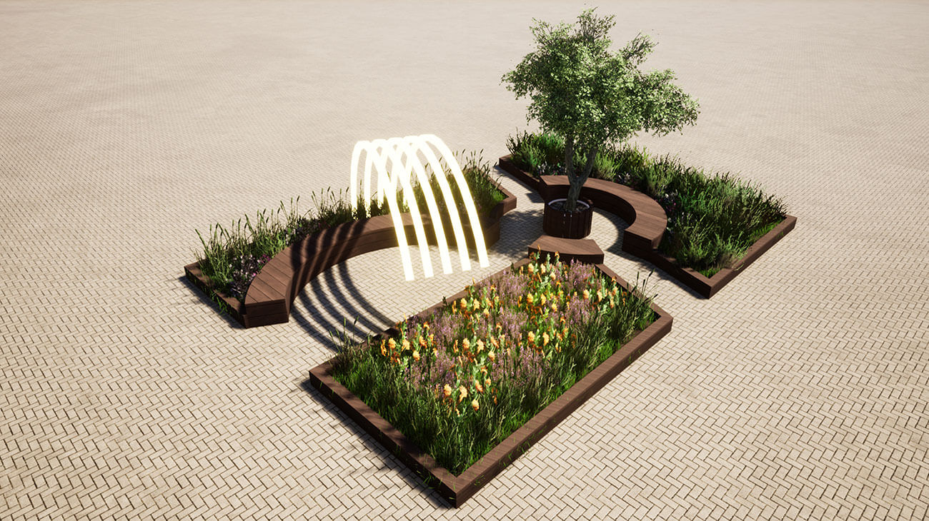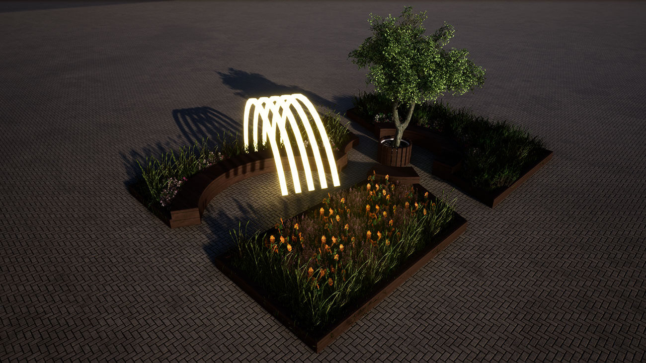 Комплекс «Прерванная бесконечность» состоит из четырех частей, центром которых является огромное дерево, объединяющее природу и человека в одно целое. Арка из неоновой подсветки разрывает «круговорот бесконечности», тем самым заставляя человека оглянуться и прочувствовать каждый элемент жизни еще раз. Словно прерывая время, люди погружаются в природу, объединяясь с ней воедино. Части скамеечных конструкций закручиваются, символизирую знак бесконечности. За этими конструкциями представлены растения и цветы. Дорожки помогают следовать «круговороту бесконечности», позволяя посетителям рассмотреть каждое растение и полностью погрузиться в среду сада.