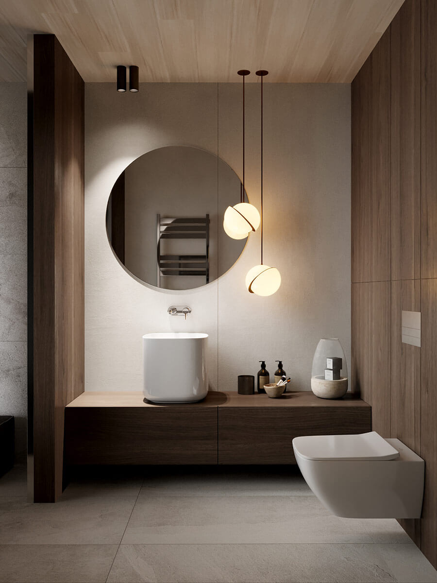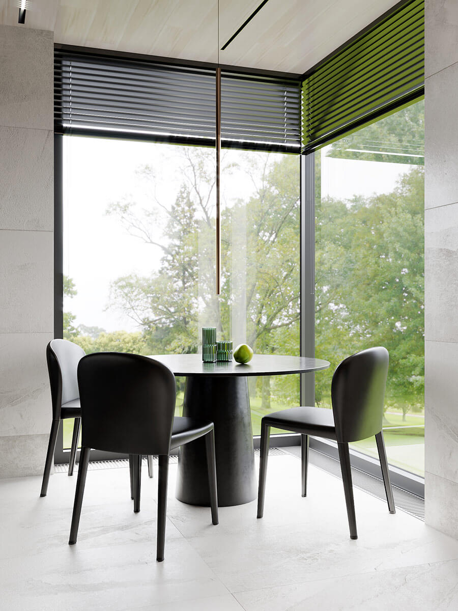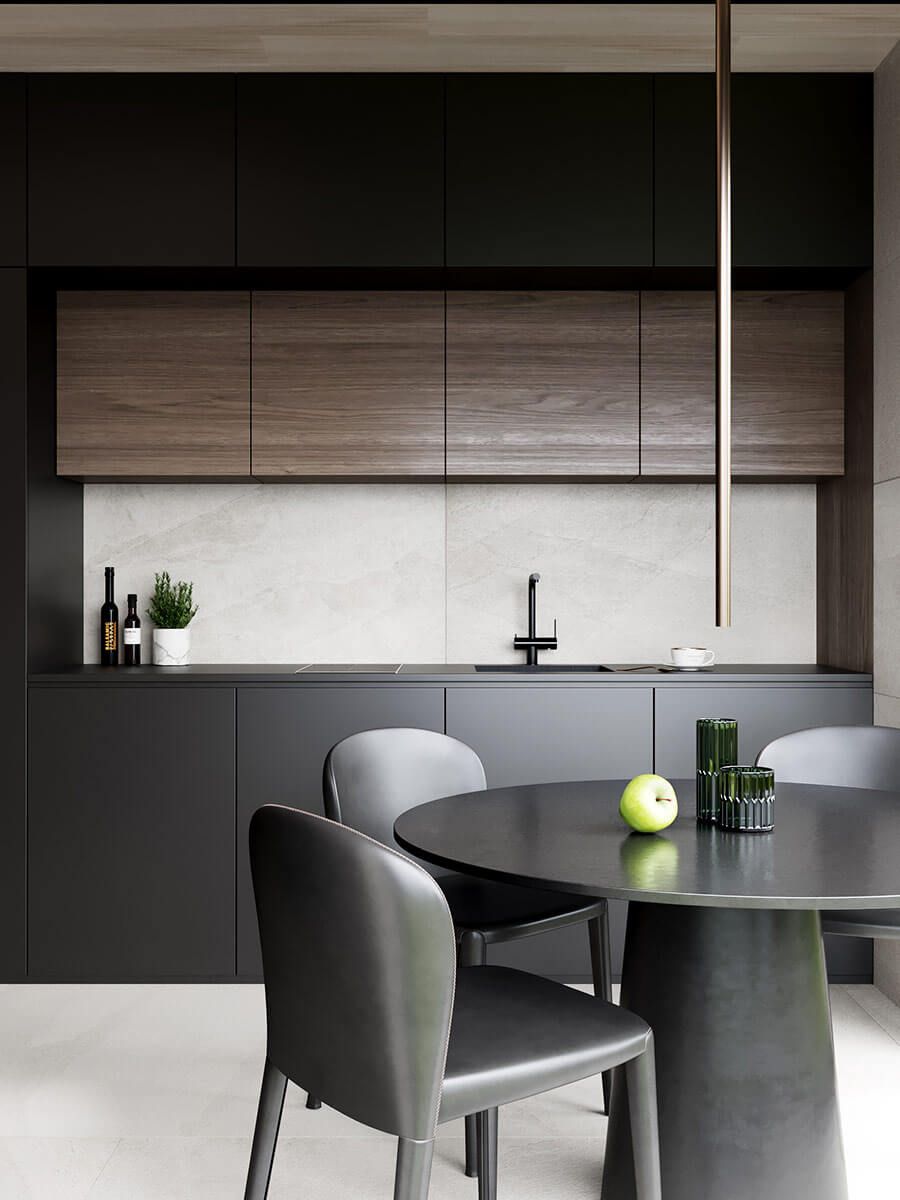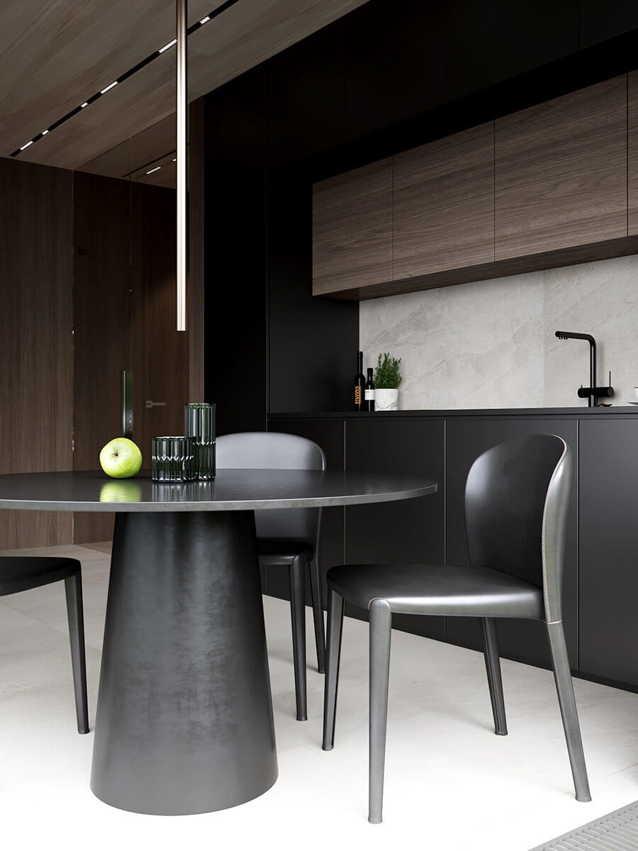 Предлагаем посмотреть и оценить проект бани, которую мы решили обустроить прямо внутри одного из наших многочисленных проектов современных вилл. Интерьер выглядит весьма просторным, но по факту для проектирования нам было отведено не так много полезной площади. Первое, на что хотелось бы обратить ваше внимание – озаренная светом обеденная зона, открывающая панораму на ландшафты природы. Здесь мы организовали стол на три посадочных места, журнальный стол в окружении уютных кресел и небольшой кухонный гарнитур, в отделке черным нанотехнологичным матовым материалом – Fenix. Минуя стеклянную перегородку, оказываешься в душевой. Она же является проходной зоной между кухней и баней. Парная отделана теплыми оттенками выгонки из липы и обладает эксклюзивной печью по авторским эскизам команды нашего бюро. Так же мы не забыли об организации вместительной гардеробной и санузла. Мы очень постарались, чтобы банные процедуры наших заказчиков были наполнены уютом