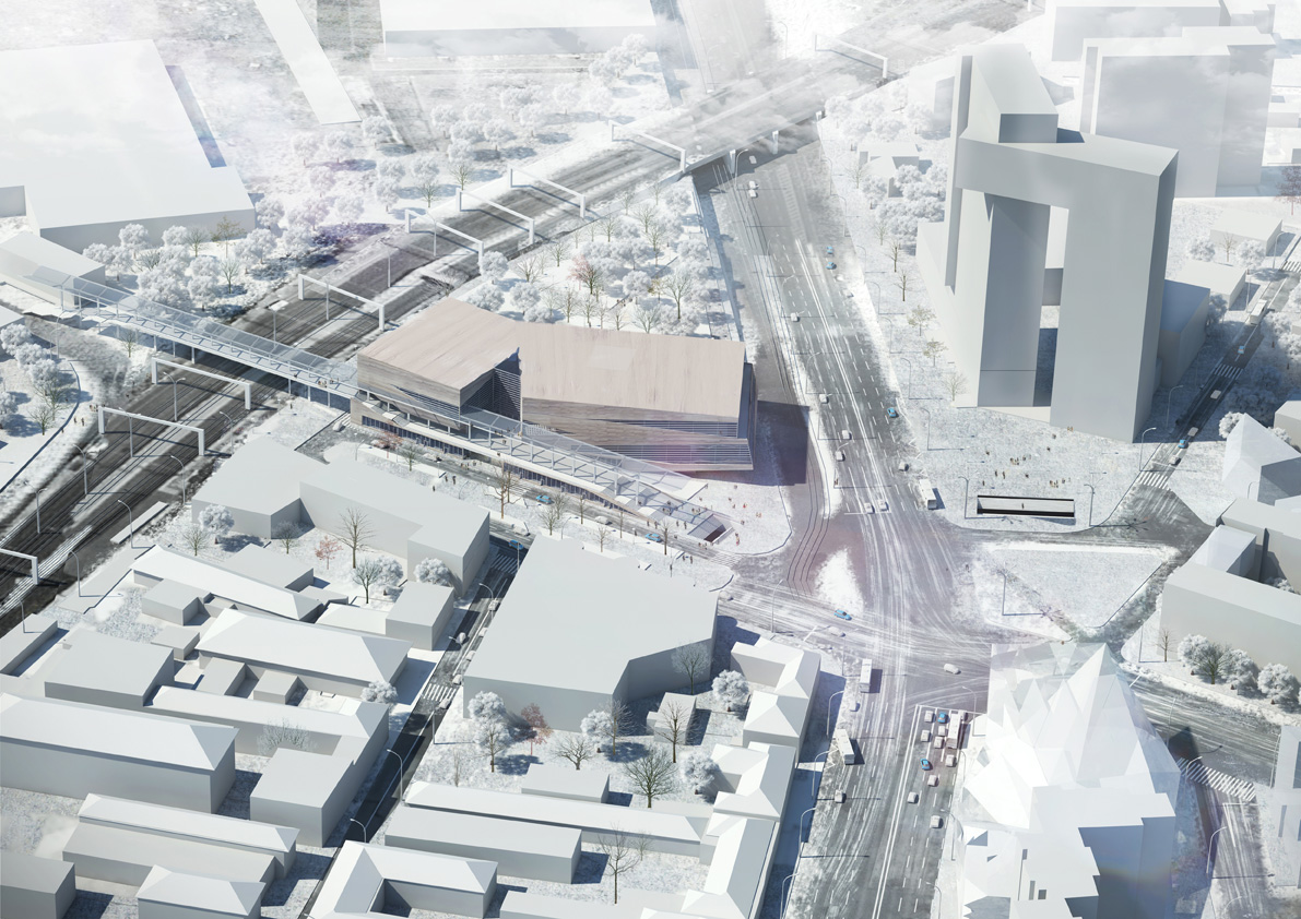 Спроектированный театр расположен в городе Москве на Площади Ильича. Участок имеет прямоугольную форму. При анализе ситуации и проектировании была поставлена задача совместить данную площадку с будущим жилым кварталом А-класса на месте завода «Серп и молот». При этом было необходимо спроектировать мост таким образом, чтобы он не разрушал образ театра, а наоборот работал на него как стилистически, так и функционально. Спроектированный мост выполняет две функции: коммуникационный узел для перехода из будущего квартала на сторону данной площадки; входная зона театра (своеобразная площадка при входе).