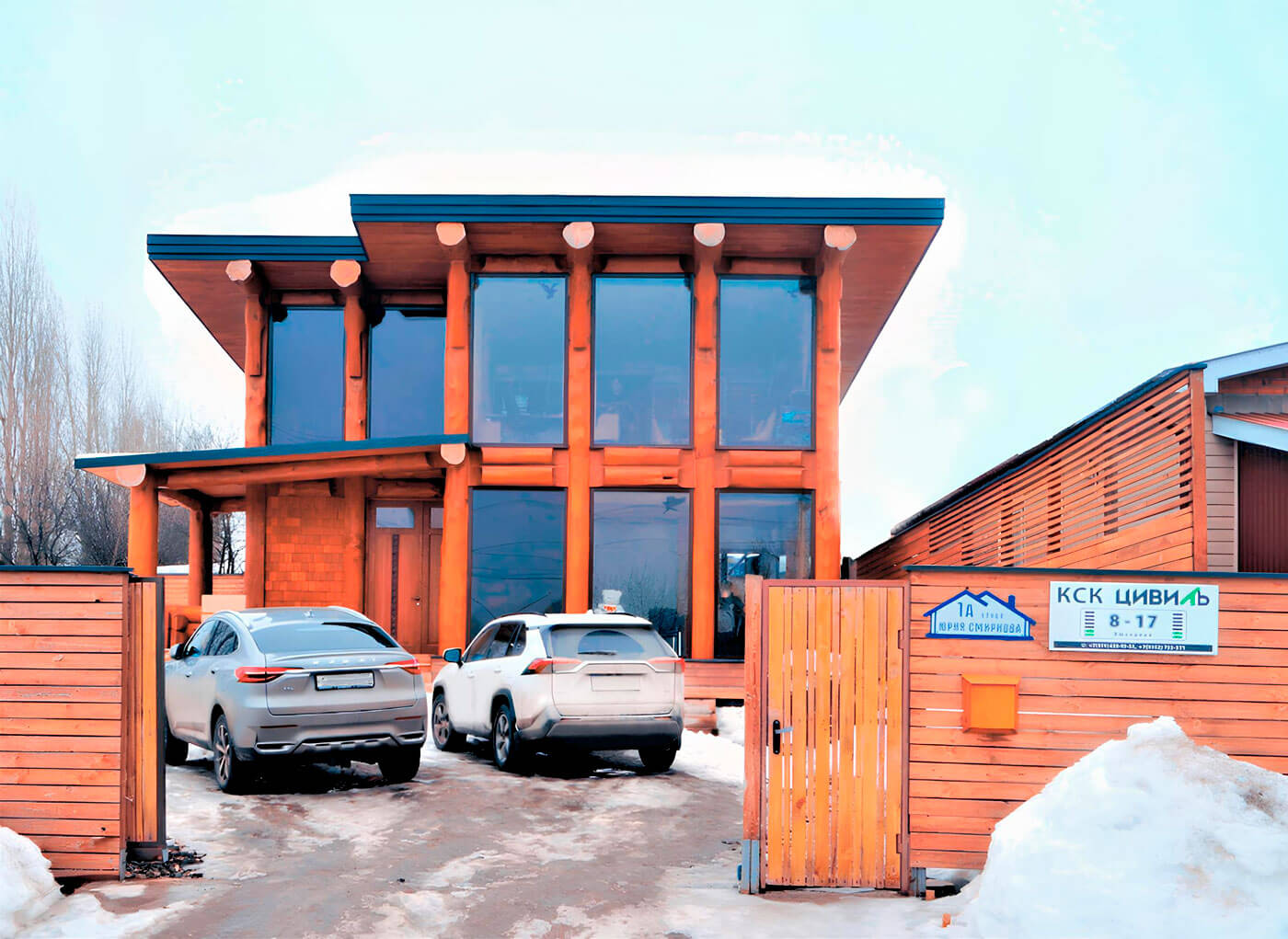 Проект «Енисей» — это уникальный двухэтажный деревянный дом из кедра в технологии столбовой рубки Post & Beam, является офисом компании ООО «КСК Цивиль», расположенным в г. Чебоксары. Именно расположив офис в центральной части города, мы продвигаем современное деревянное домостроение, что деревянный дом, это не просто «терем», а пример современного подхода к строительству, который сочетает в себе красоту дерева, надежность и функциональность. Он предоставляет своим жителям комфортное и стильное жилье, гармонично вписанное как в окружающую природную, так и городскую среду.