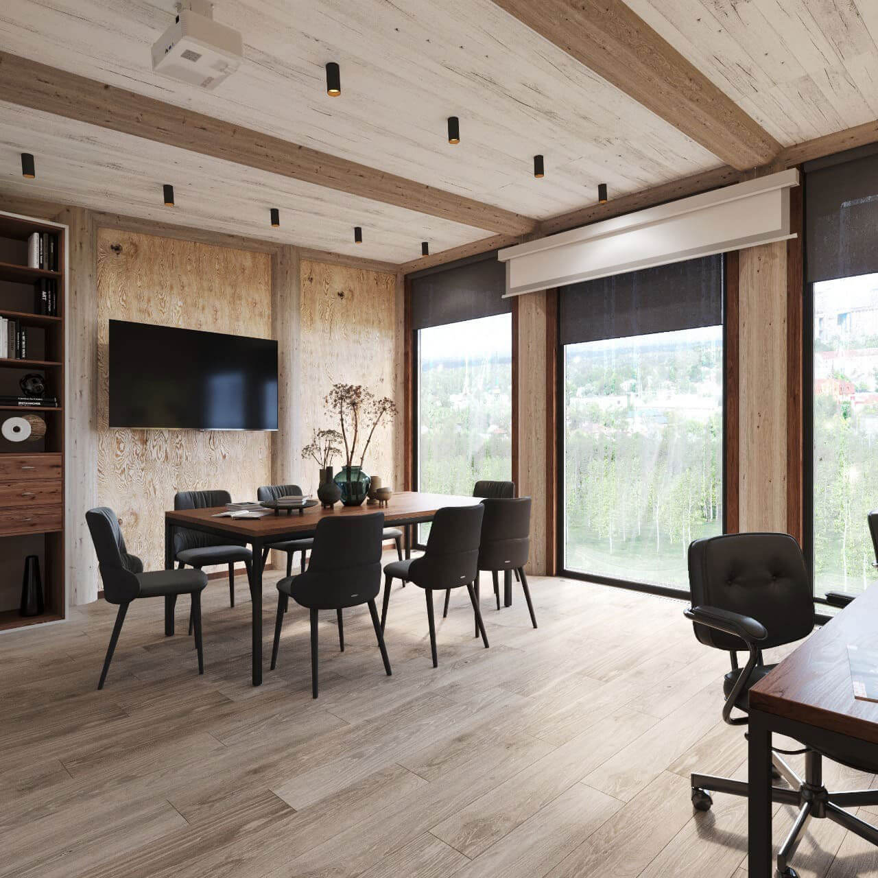 Внутреннее пространство офиса оформлено с особым вниманием к деталям. Уютные рабочие кабинеты, обставленные деревянной мебелью и стильными аксессуарами, создают атмосферу комфорта и уюта. Офис оборудован современной техникой и оборудованием, чтобы обеспечить клиентам всю необходимую функциональность для проведения встреч и консультаций.