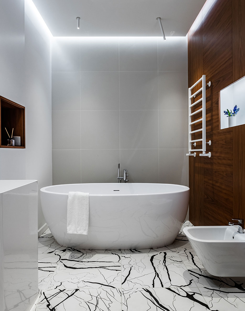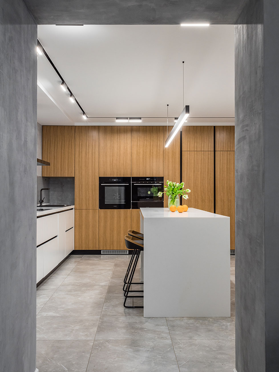 В основу проекта заложили минимализм. Прямые линии, скрытый монтаж, чистое пространство и интересные детали.