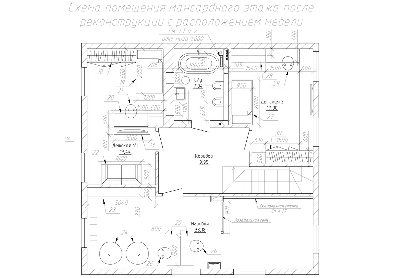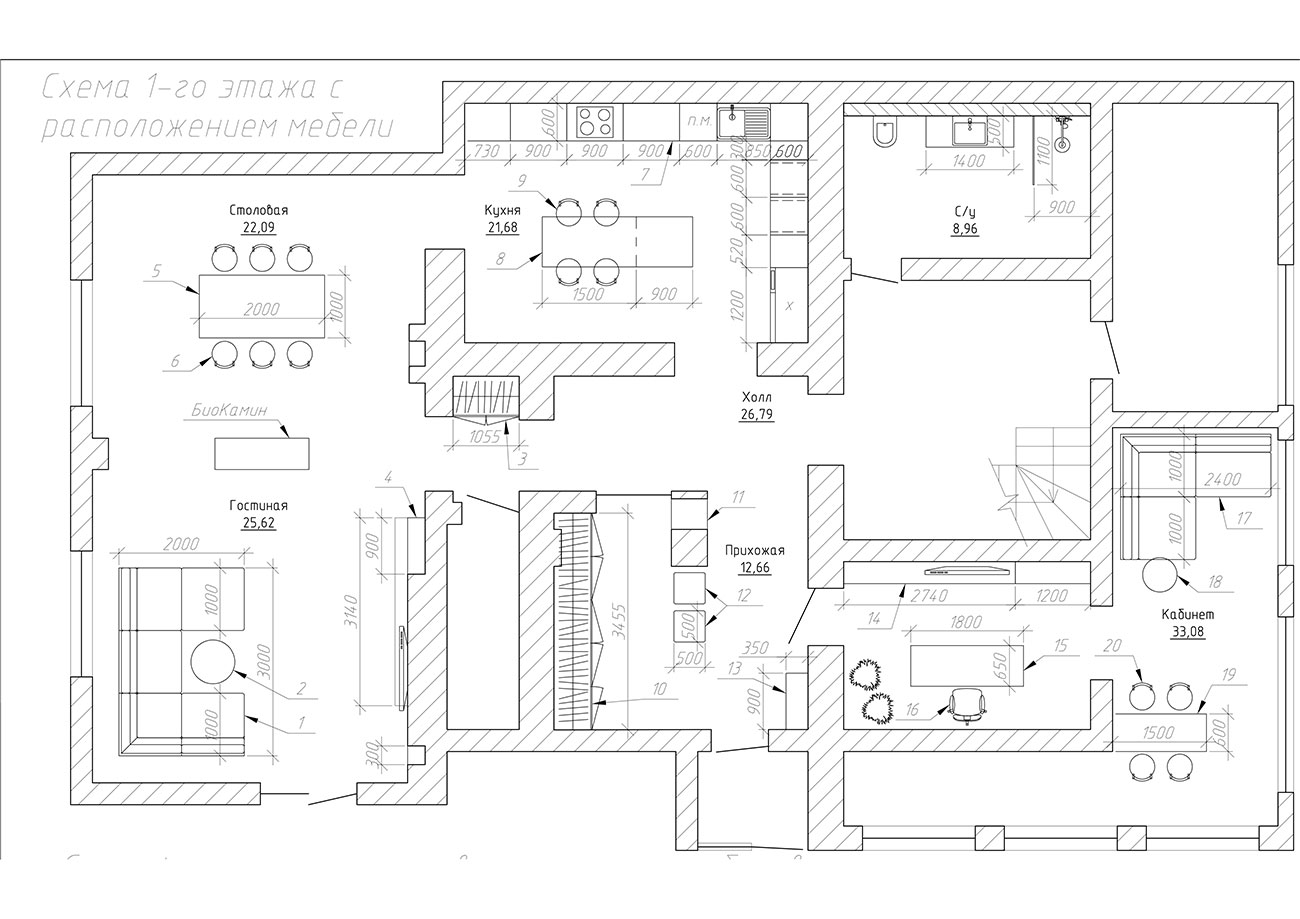 Мы переосмыслили сложную геометрию дома, неудобное зонирование и частично скорректировали планировку.
