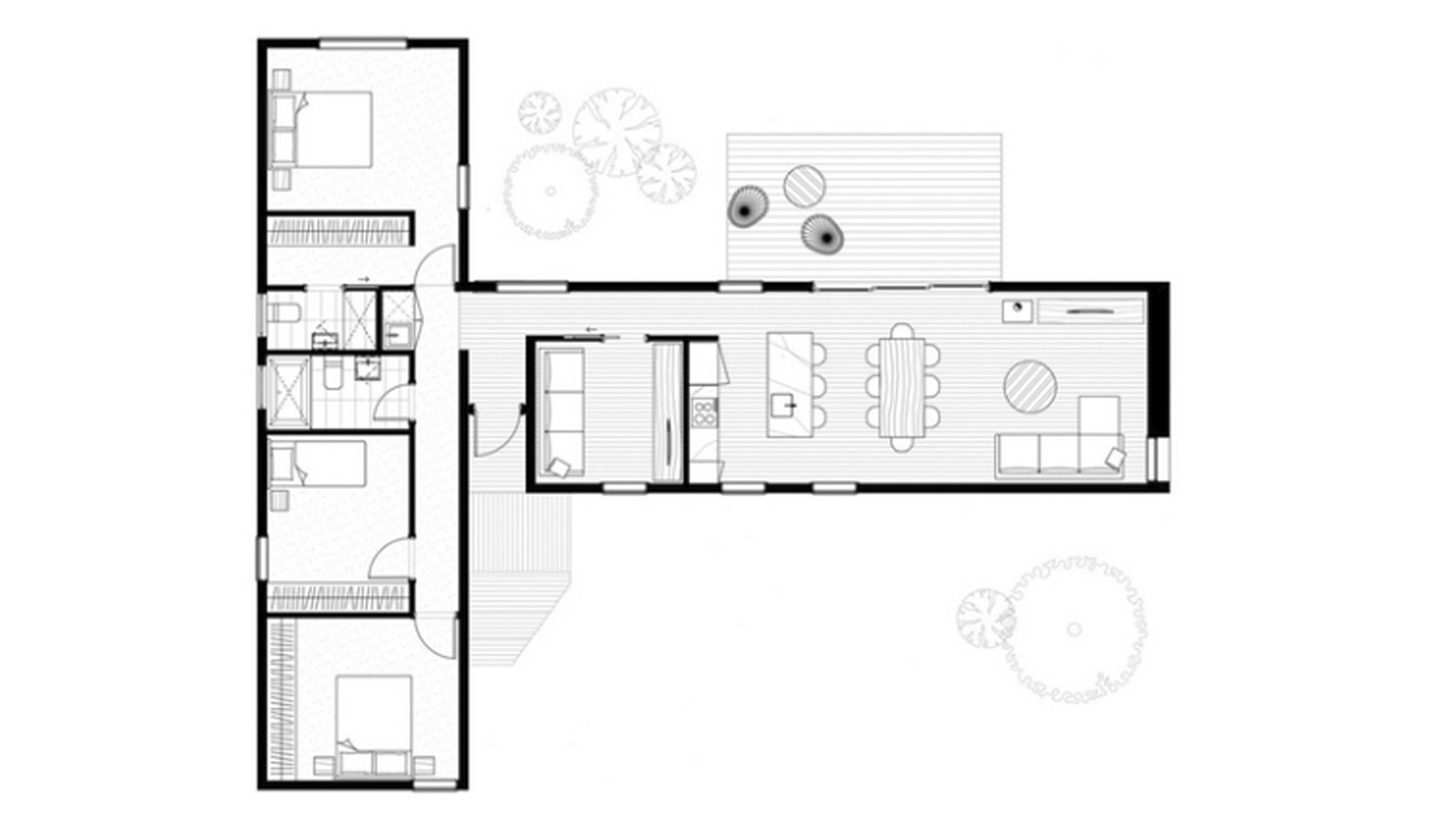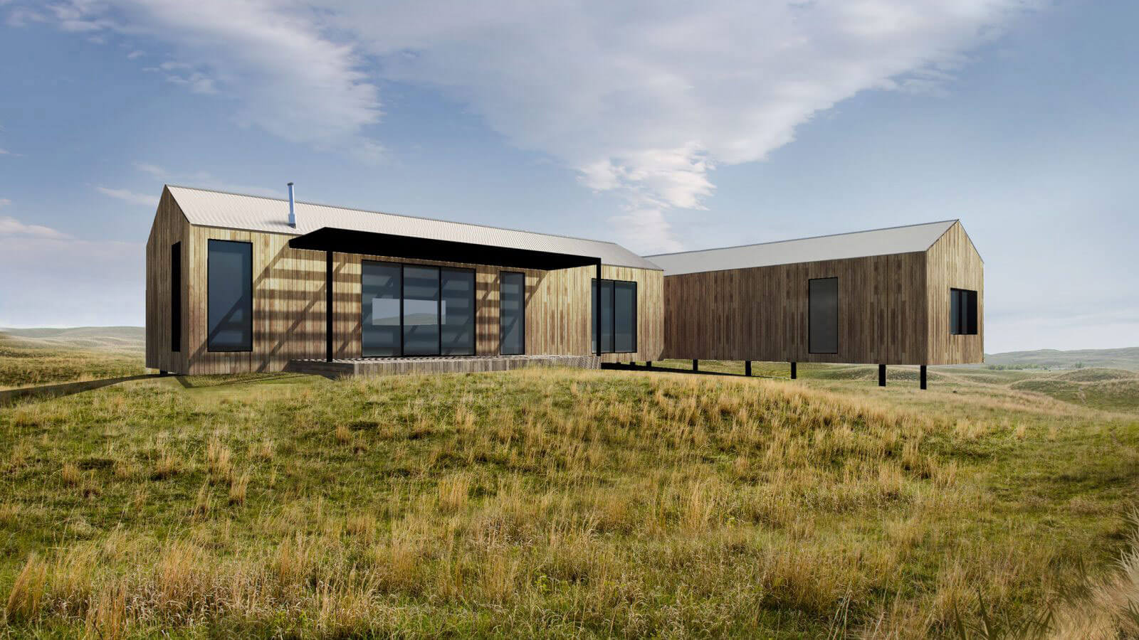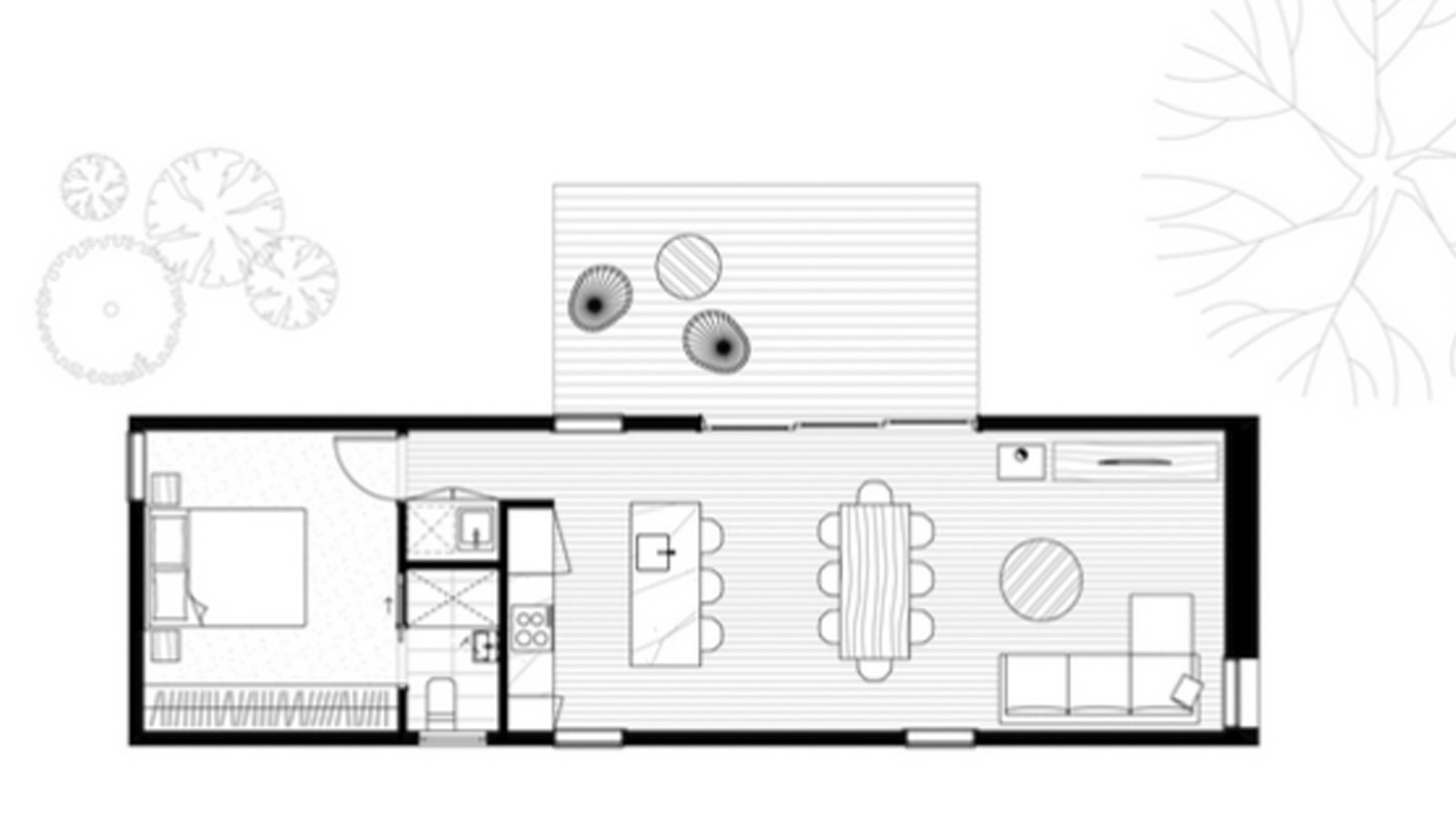 Проект модульного дома «Джуно» легко разделяется на отдельные жилые и спальные крылья, он достаточно гибок, чтобы работать на разных участках, максимально используя при этом солнечный приток и вентиляцию с поперечным потоком. Центральное соединение может выступать в качестве воздушного шлюза между двумя модулями, уменьшая потери или приток тепла при входе через входную дверь и поощряя эффективное использование систем отопления и охлаждения. «Джуно» предоставляет просторное пространство для беззаботной жизни, что делает его подходящим для больших загородных и пляжных домом.