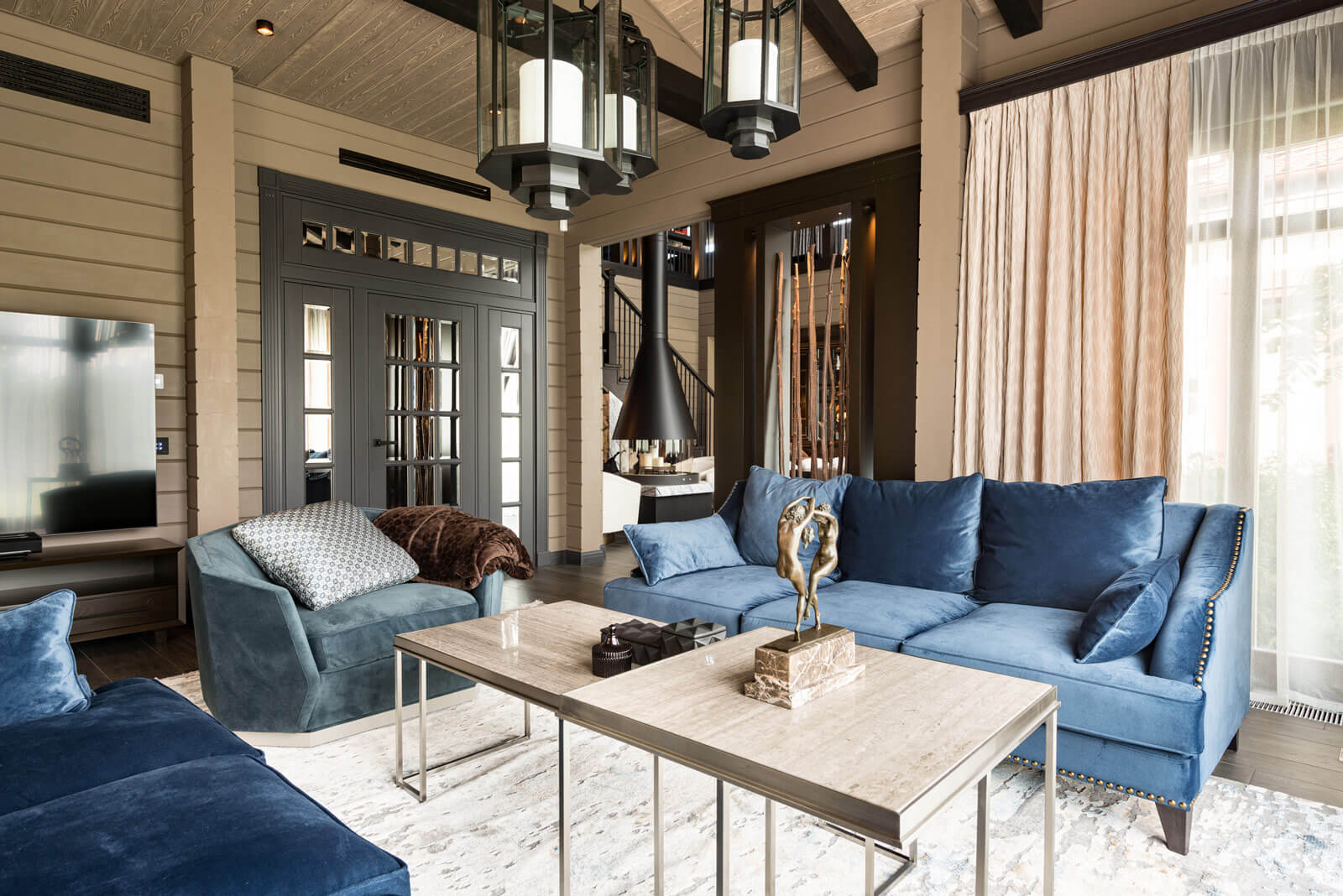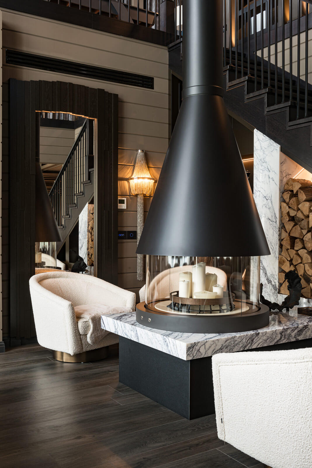 Симметрия в планировочном решении - важный принцип построения пространства и расположения помещений. Центральным местом в доместал очаг – камин в гостиной со вторым светом. Необходимо было предусмотреть максимально открытое и воздушное пространство, разместить под разные интересы всех членов семьи места для занятия спортом и отдыхом.