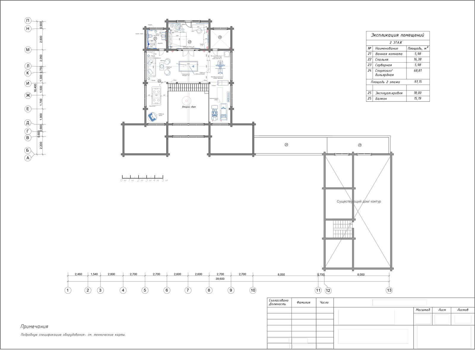 Трудности: Заказчик поставил очень жесткие сроки. Архитектуру и конструкторскую документацию «делали» параллельно с производством работ. К примеру, только Раздел проекта «Конструкции Деревянные (КД) с узлами» — 180 листов!