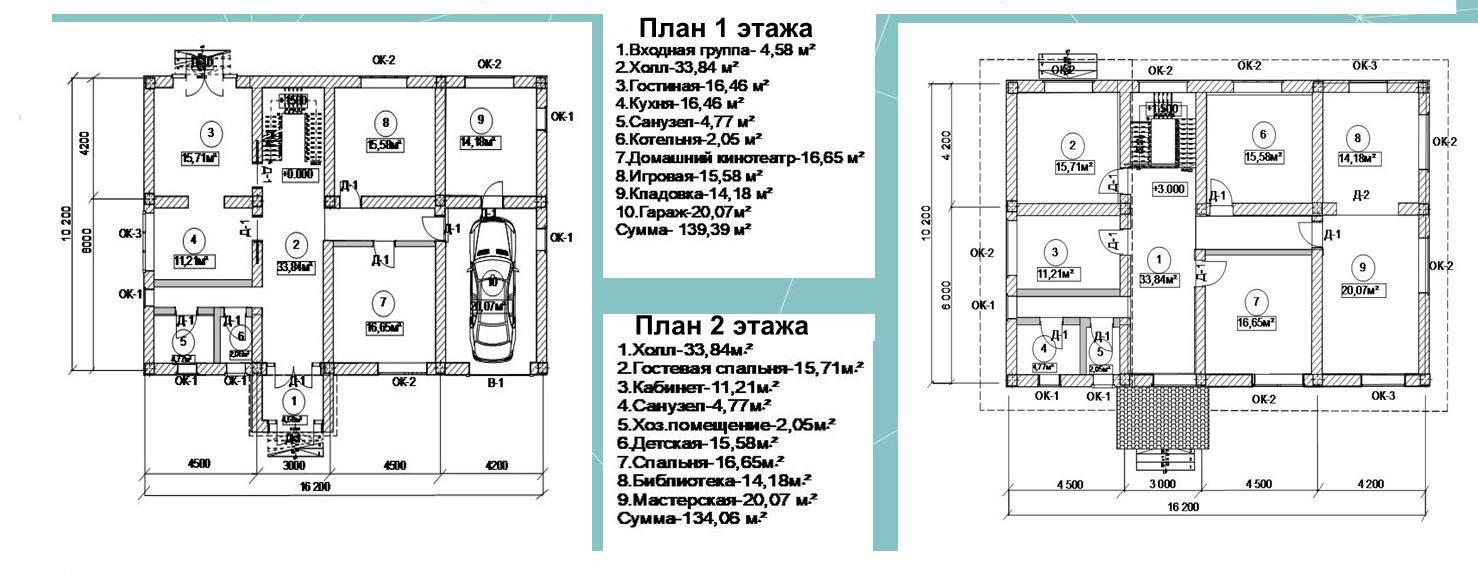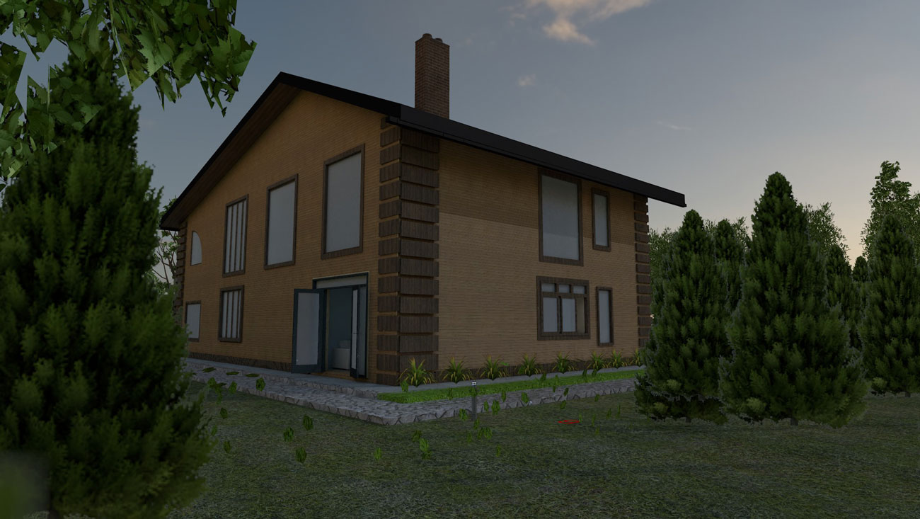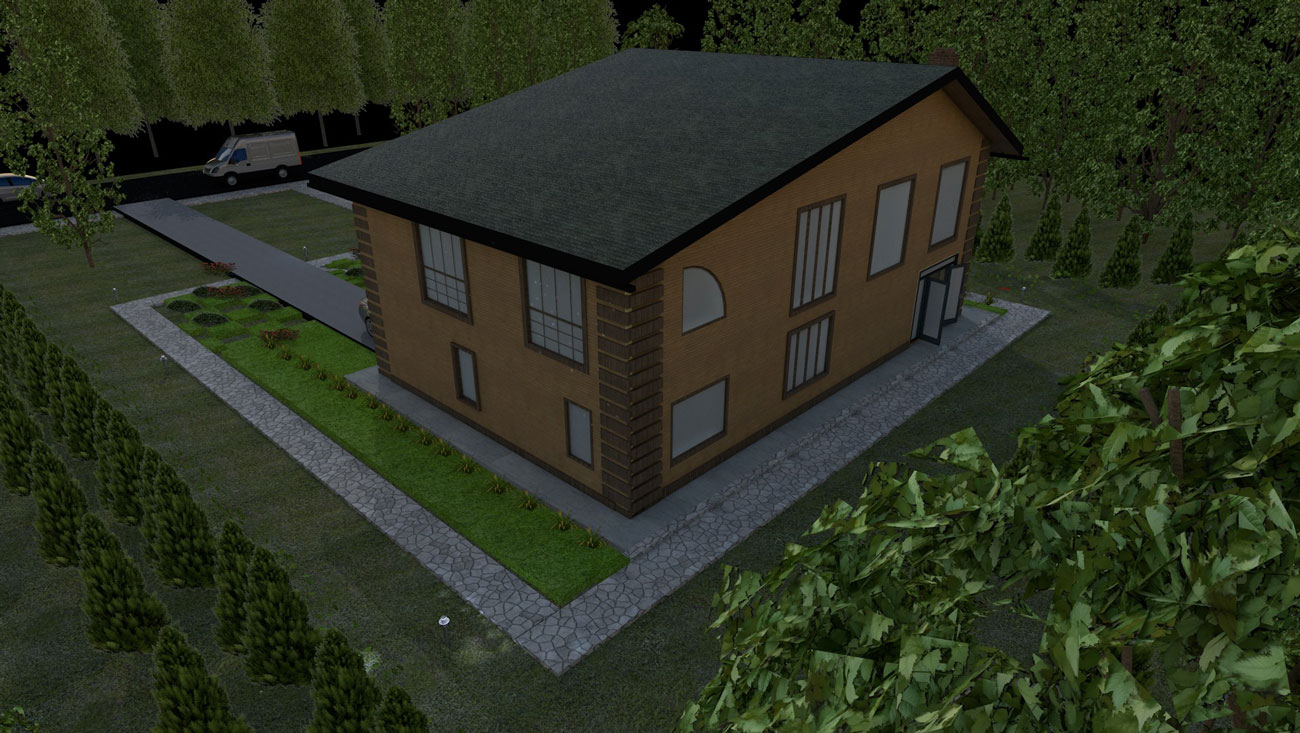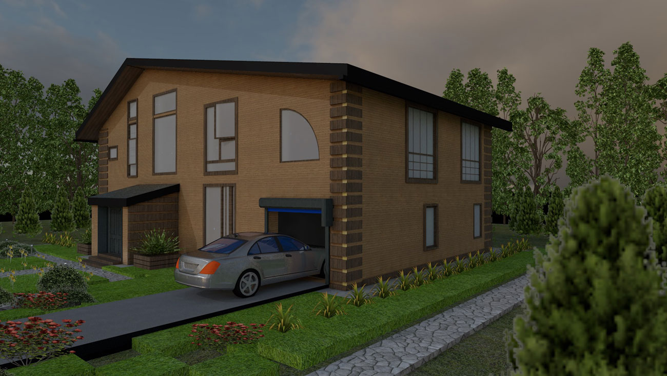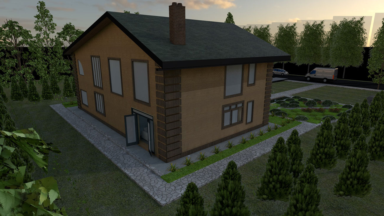 Проект деревянного коттеджа представляет собой двухэтажное здание со встроенным гаражом. Площадь жилого дома составляет 273,45 м². Дом предназначен для круглогодичного проживания семьи от 4 до 6 человек. Расположен заезд во двор и в гараж. Освещение: маленькие фонари.