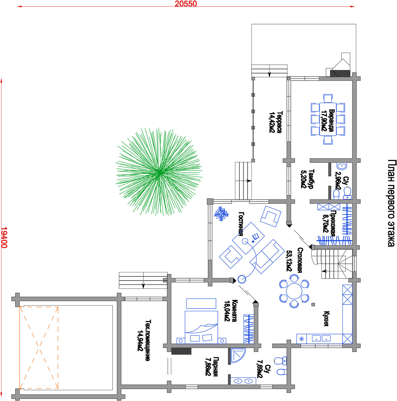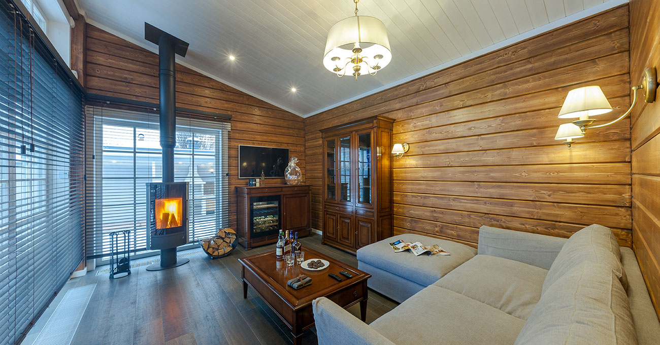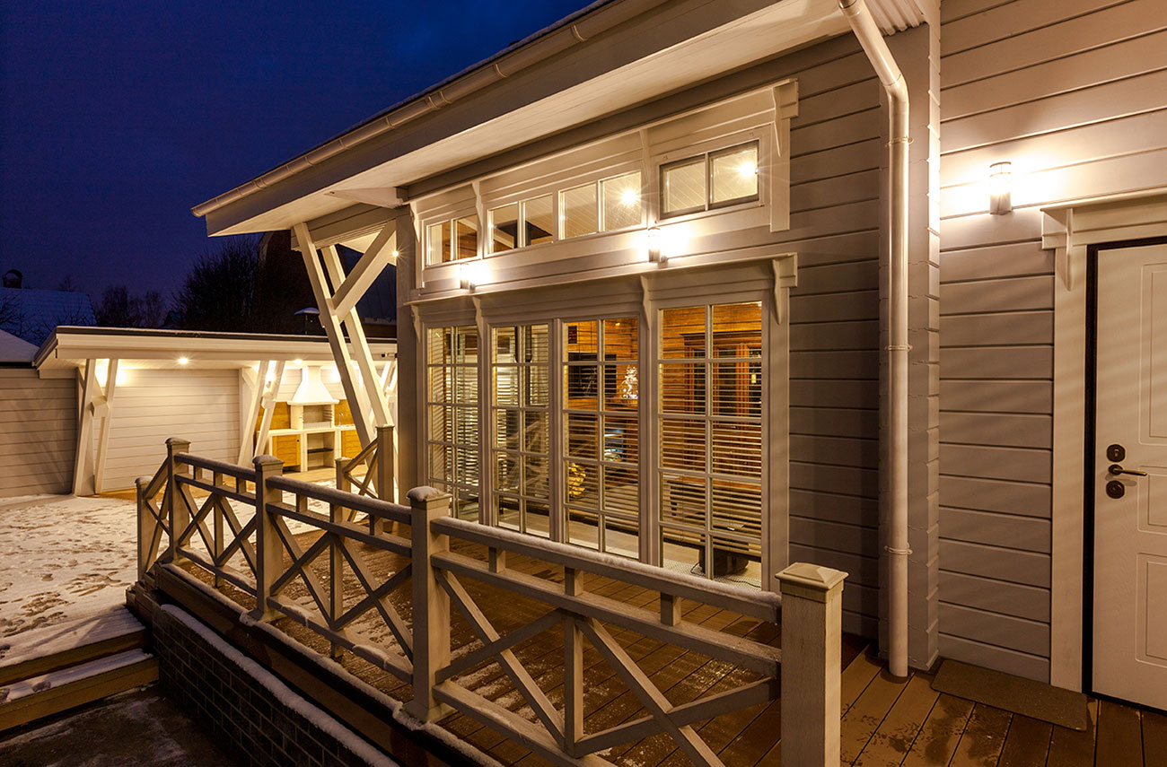 Сквозь окна дарит вид на хвойных он прелестниц.