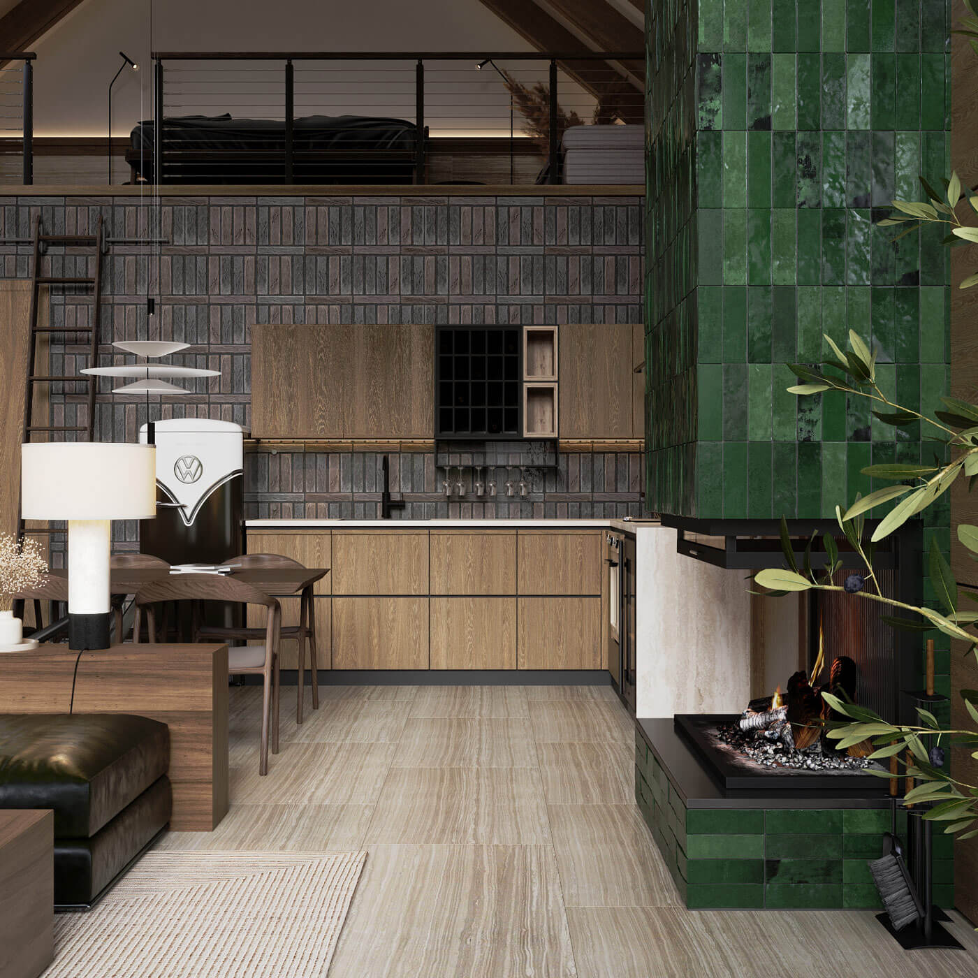 Спокойные цвета в отделке, натуральные материалы, ретро мотивы, элементы освещения и мебели, от брендов, ставших законодателями стиля, все это и многое другое позволило дизайнеру создать проект, который идет вразрез с современными тенденциями и трендами и, в то же время, всем своим видом уверенно заявляющий, что он способен пережить многочисленные маркетинговые войны и не утратить своей актуальности спустя долгие годы.