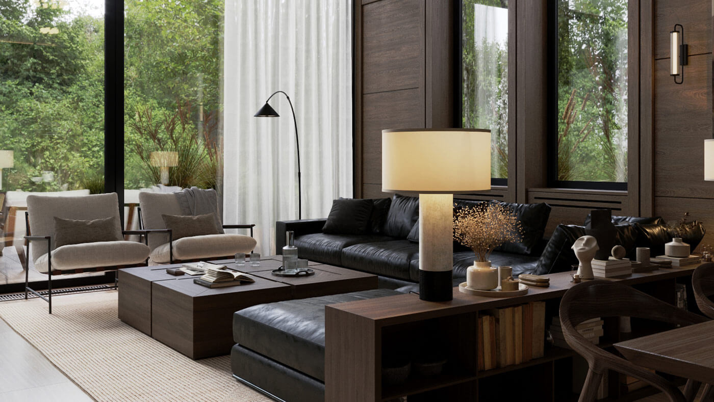 Основной акцент в разработке данного проекта был сделан на детальную и скрупулезную проработку всех элементов интерьера, их пропорций и геометричности архитектурных элементов.