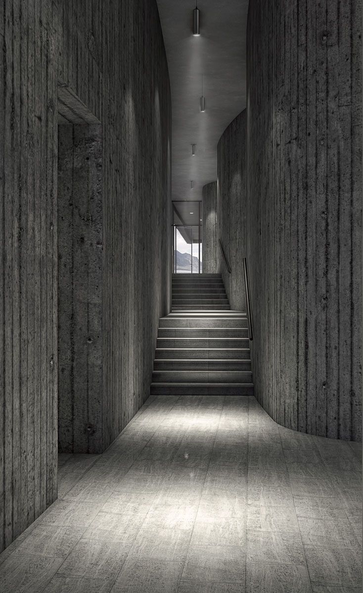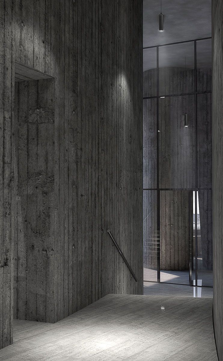 - водонепроницаемый бетон со следами опалубки — для создания наклоненных и криволинейных стен;