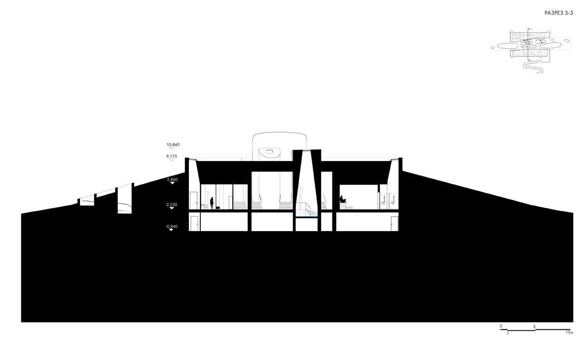 Традиционные дома жителей Исландии заглублены в землю и покрыты дерном, так как зачастую температура земли выше наружной температуры воздуха. Банно-термальный комплекс ощущений встроен в рельеф, видны только выступающие террасы и спиралевидный путь.