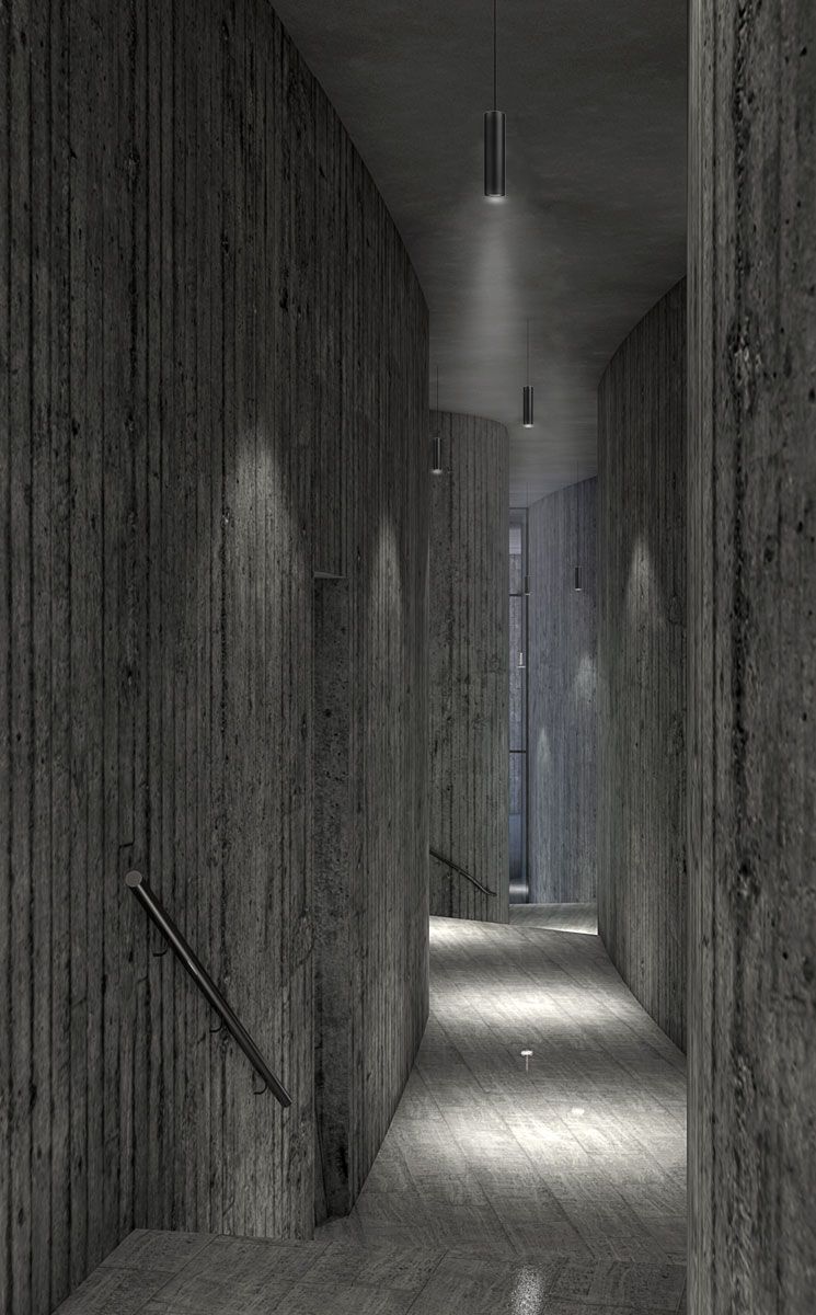 - водонепроницаемый бетон со следами опалубки — для создания наклоненных и криволинейных стен;