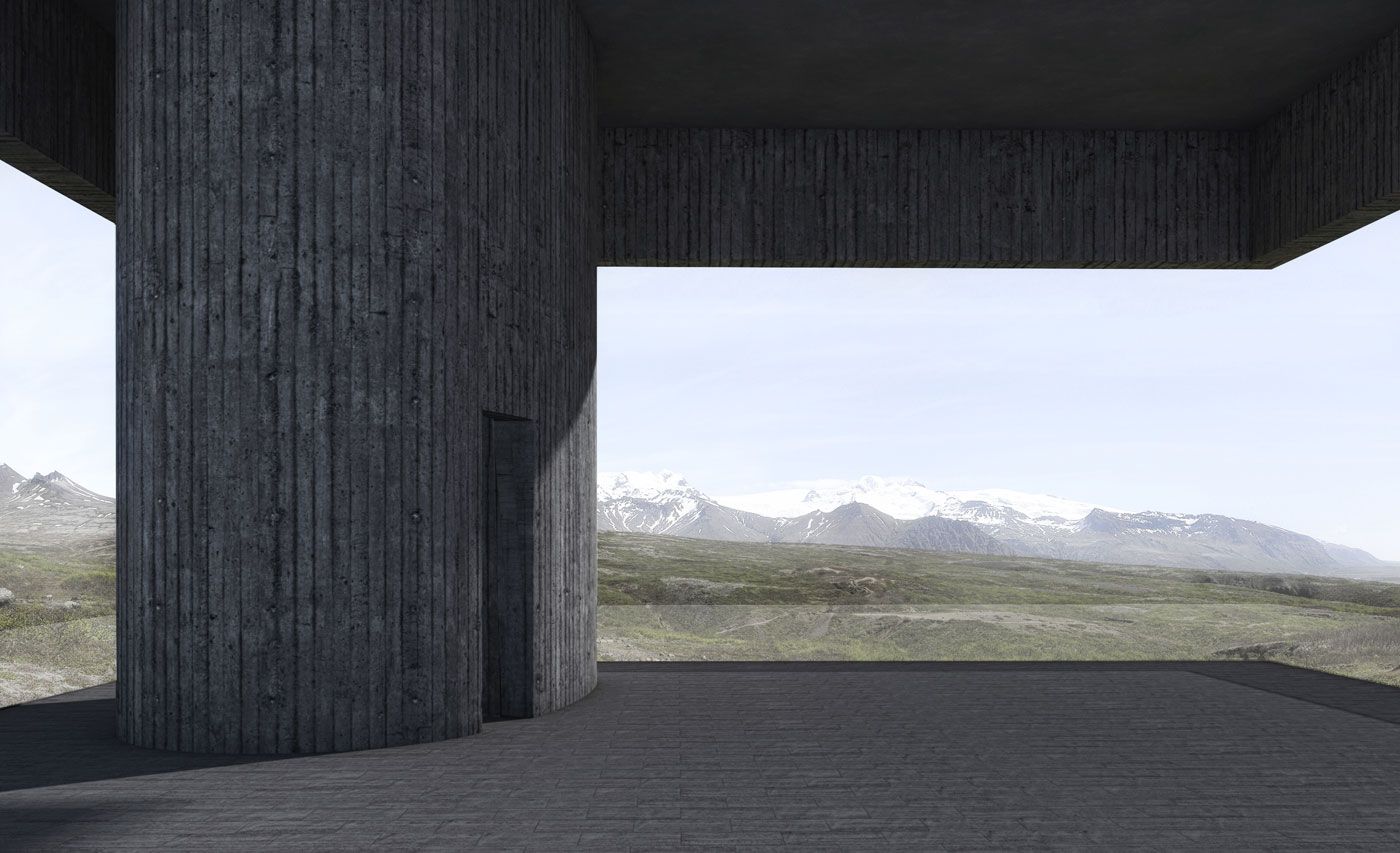 Традиционные дома жителей Исландии заглублены в землю и покрыты дерном, так как зачастую температура земли выше наружной температуры воздуха. Банно-термальный комплекс ощущений встроен в рельеф, видны только выступающие террасы и спиралевидный путь.