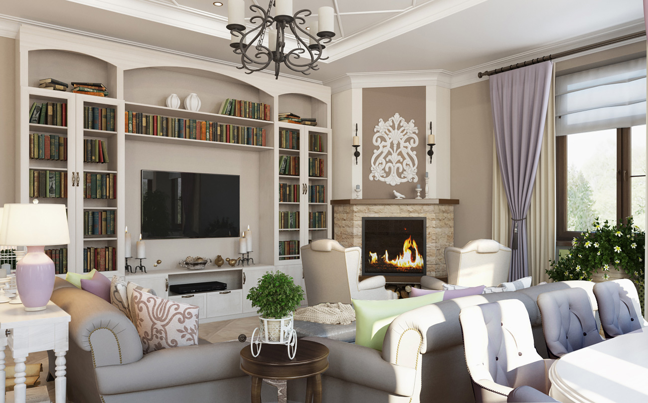 Загородный дом расположен в ЖК Лосиный Остров. Хозяева дома - большие ценители уютных уголков Италии и Франции. И в свое жилище им хотелось привнести частичку этого средиземноморского колорита. Поэтому были выбраны светлые природные оттенки и натуральные текстуры камня, дерева и тканей. Так, в отделке камина использован декоративный камень с природной текстурой. Сидя у камина, легко себя представить в стенах загородного домика на берегу моря...