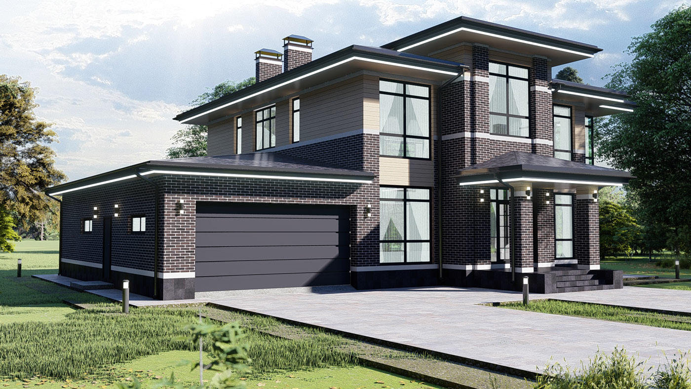 Единый дизайн-код поселка подразумевает определенные стандарты строительства. Единая архитектурная концепция и современная эстетика коттеджей в стиле Райта.