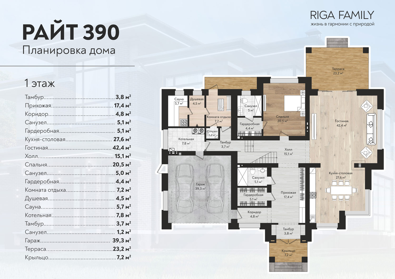Площадь — 390 м²