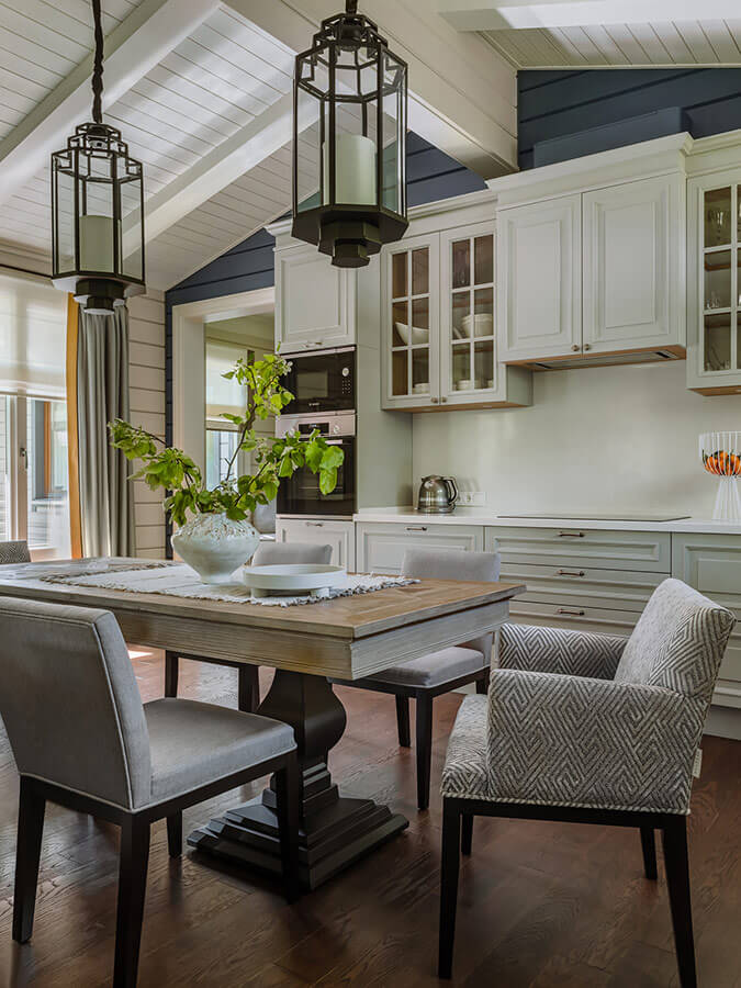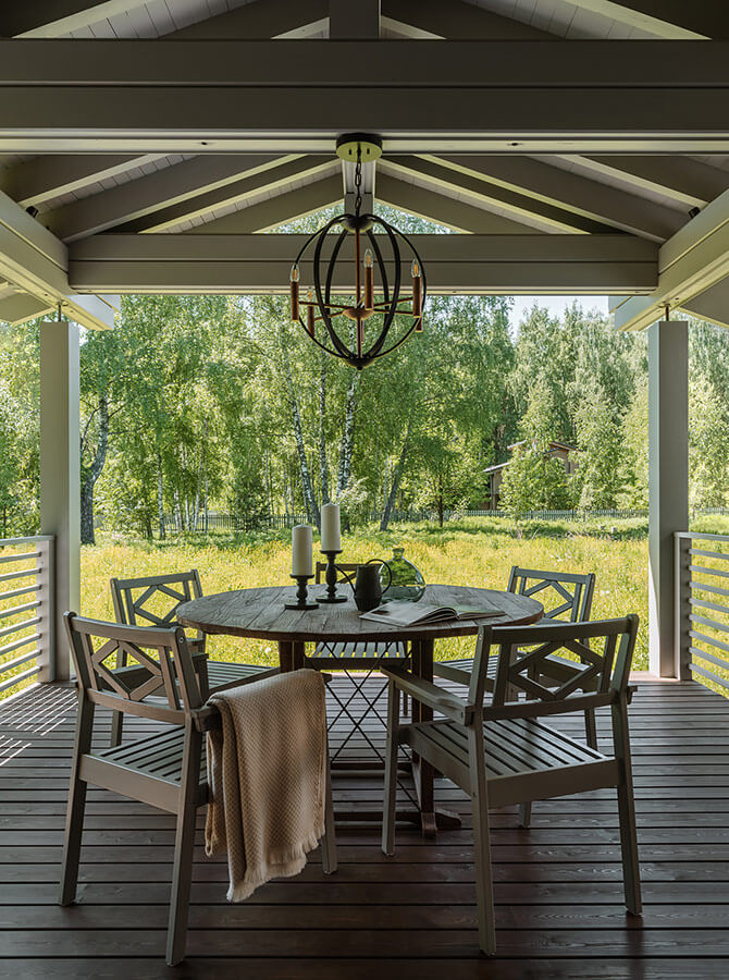 В результате всей проделанной работы дом получился индивидуальным и атмосферным. И, хотя вся мебель и предметы декора в нем новые, он выглядит обжитым и уютным.