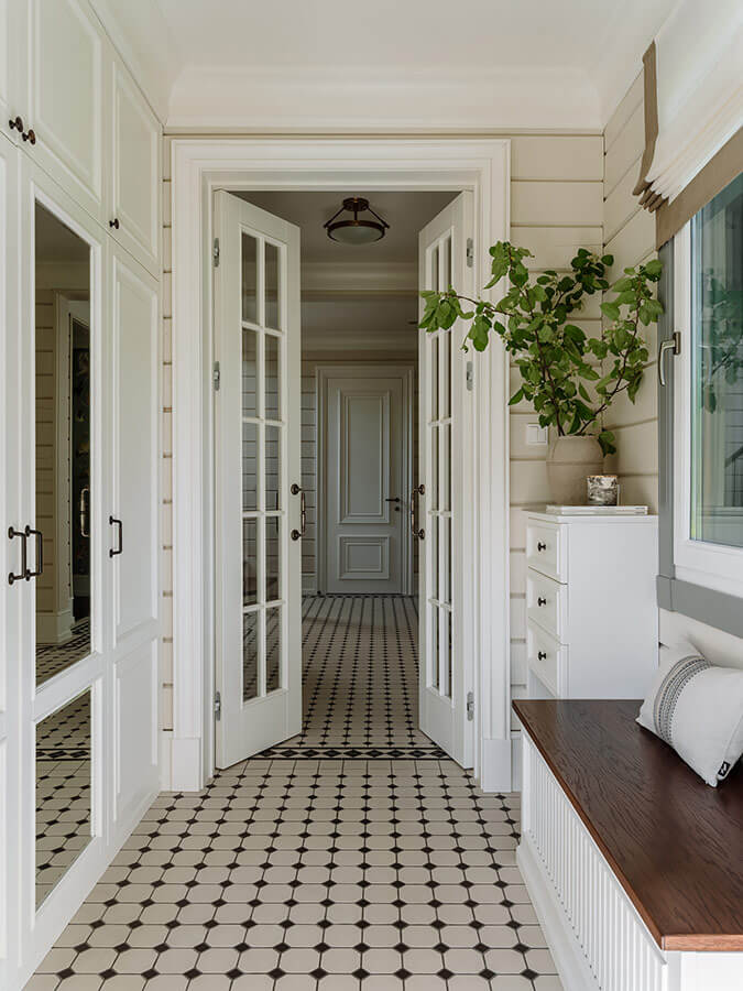 По концепции мы отталкивались от современной американской классики с добавлением ноток колониального стиля и эклектики. В подборе материалов заказчики отдавали предпочтение качеству, натуральности, надежности и хотели получить интерьер «вне времени».