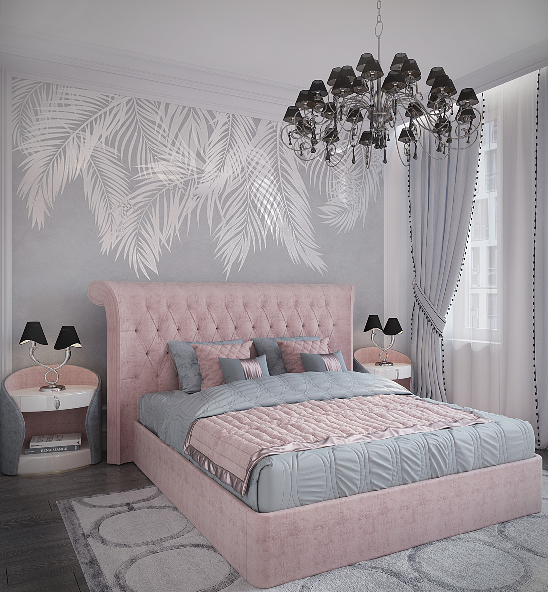 При разработке дизайн-проекта спальни для молодой семьи учитывались все пожелания заказчиков, поскольку это значимое помещение для них. Взаимосвязь спальни с другими комнатами должна осуществляться благодаря единому стилистическому решению.