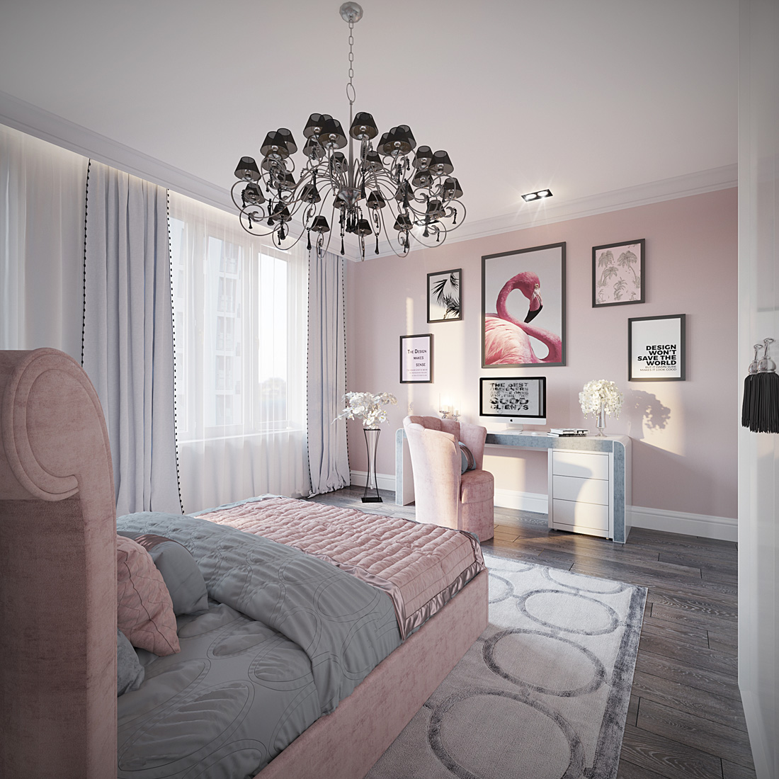 В дизайне интерьера автор проекта придерживалась принципов выразительности и простоты. В отделке помещения великолепно смотрятся светлые тона – бледно-серые, нежно-розовые.