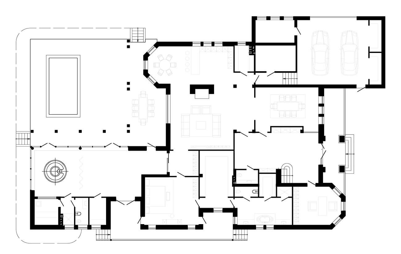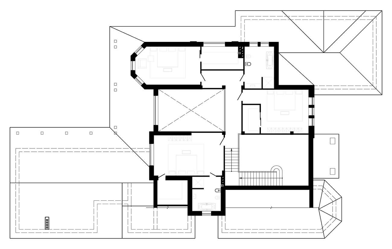 Этажность: два этажа + технические подвал и чердак + спа + бассейн