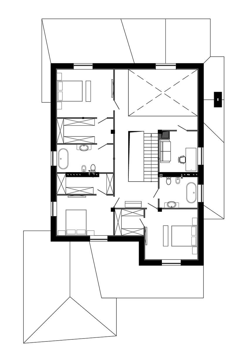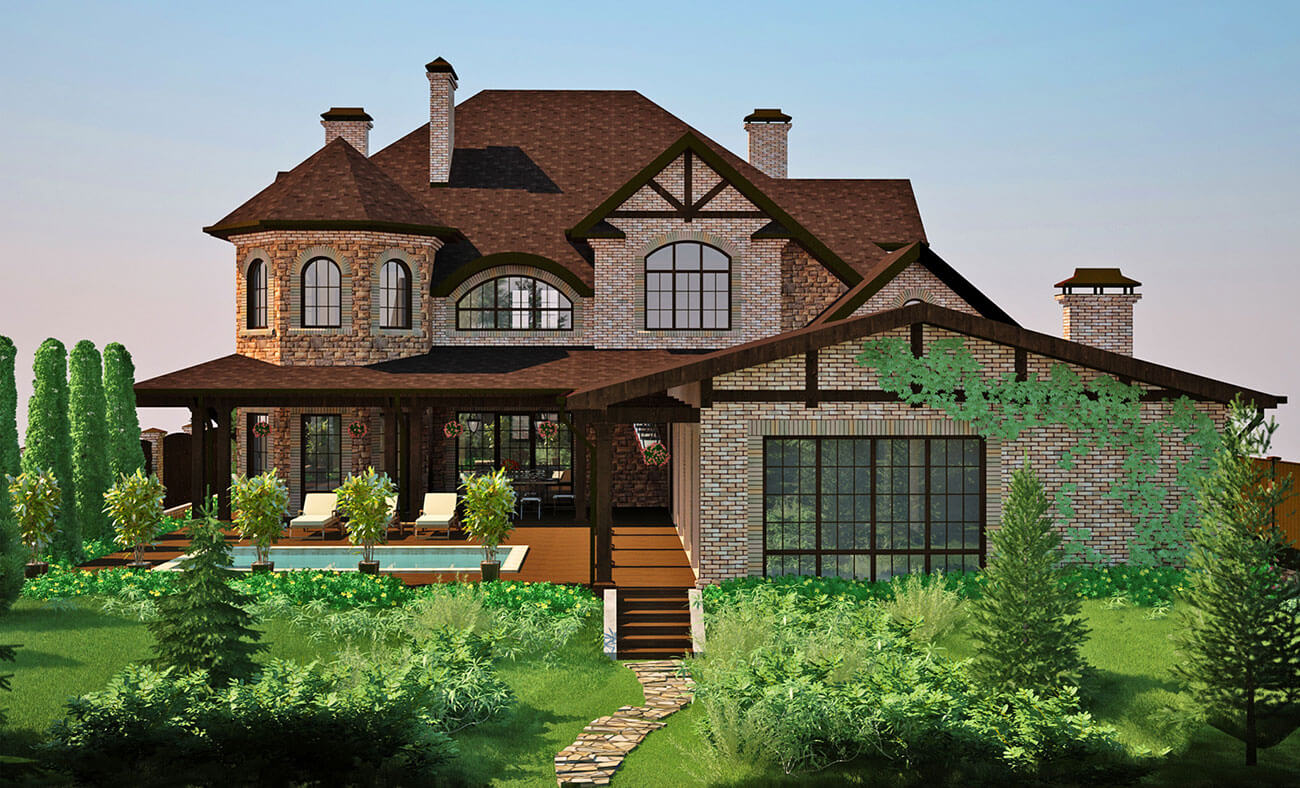 Необычность этой резиденции заключалась в комплексном проектировании сразу двух домов, объединенных не только общим и довольно сложным по конфигурации участком, но также тремя поколениями одной семьи и единой стилистикой традиционного американского дома. Дом «Mr. Valentine» предназначен для среднего и младшего поколений, а «Mrs. Valentina» принадлежит основательнице этого семейства. Мы использовали характерные для традиционной американской архитектуры элементы и ходы. Встроенные друг в друга каскадные крыши с достаточно активными углами кровли, эркеры, мансарды…