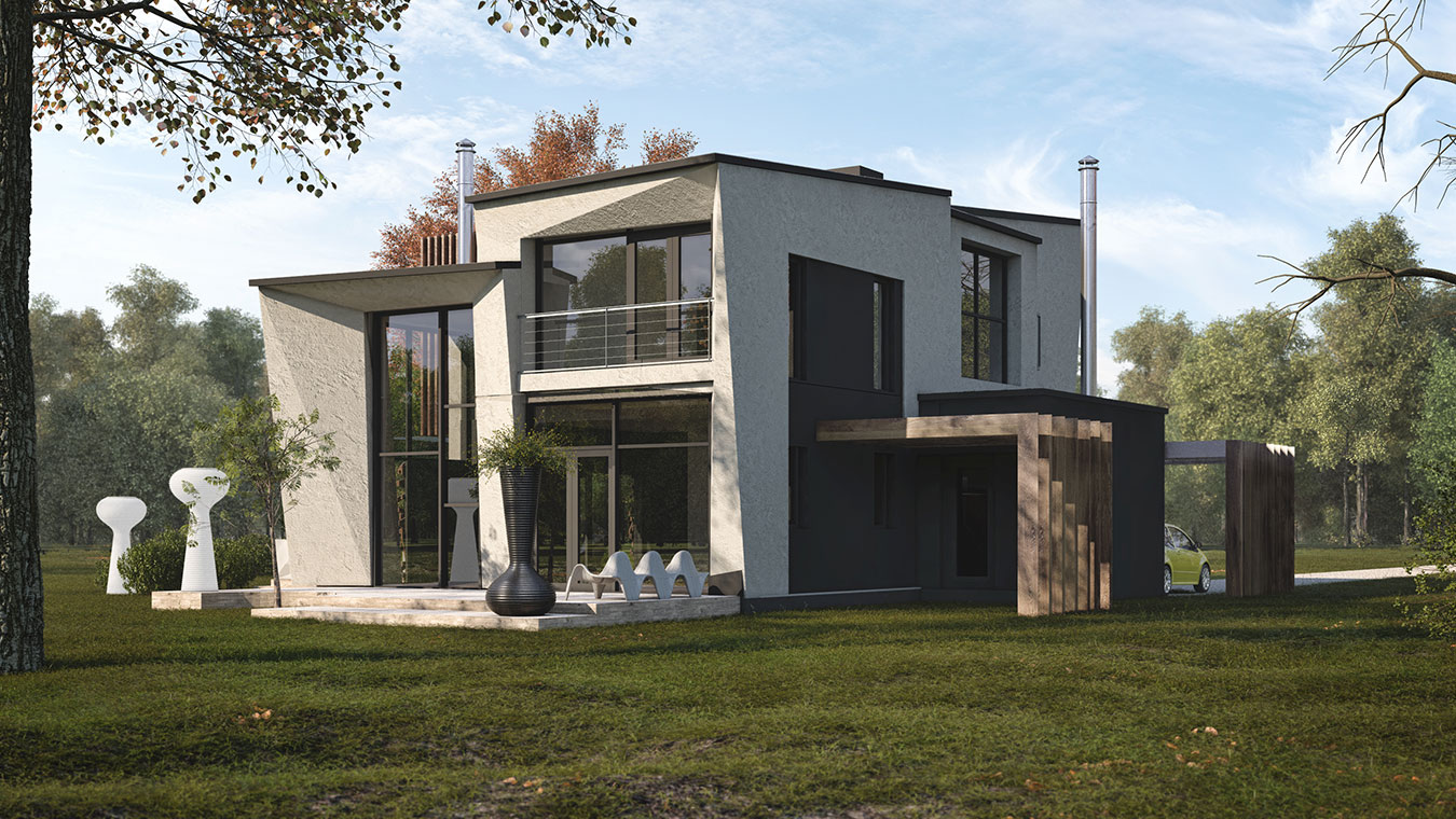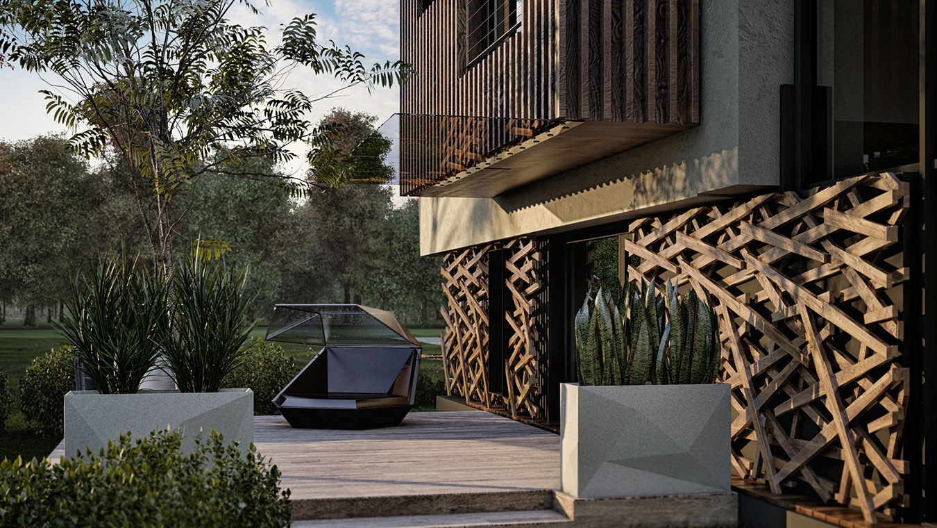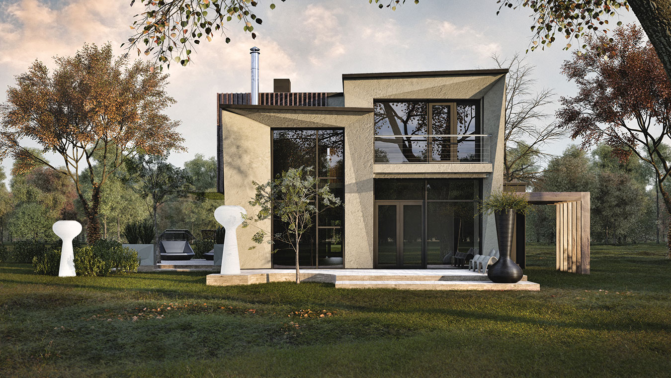 На не видимый с улицы фасад вынесены объем небольшой спа-зоны с сауной и купелью и скрытая от посторонних глаз терраса.