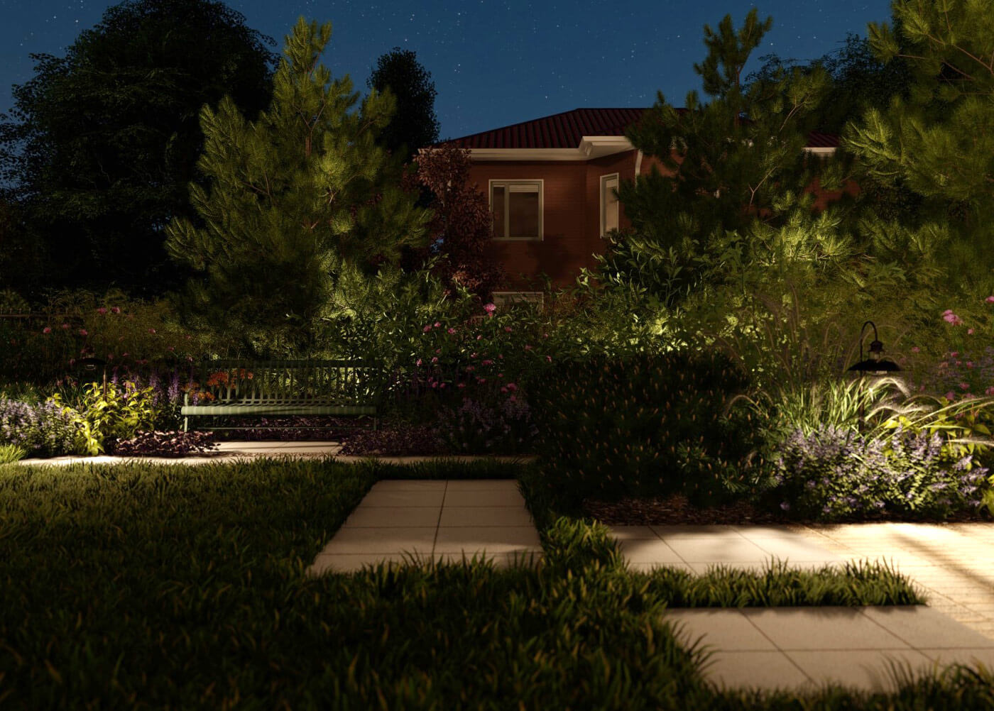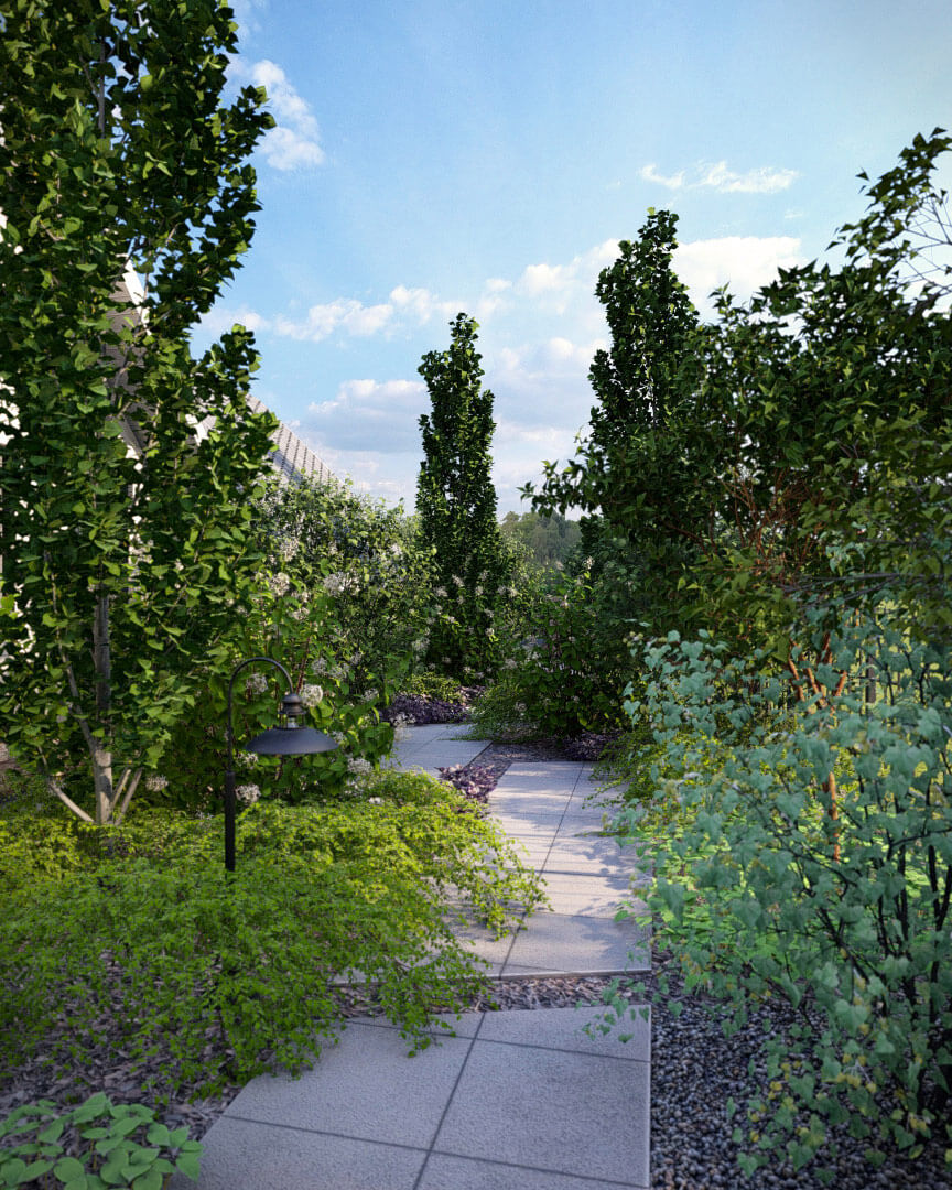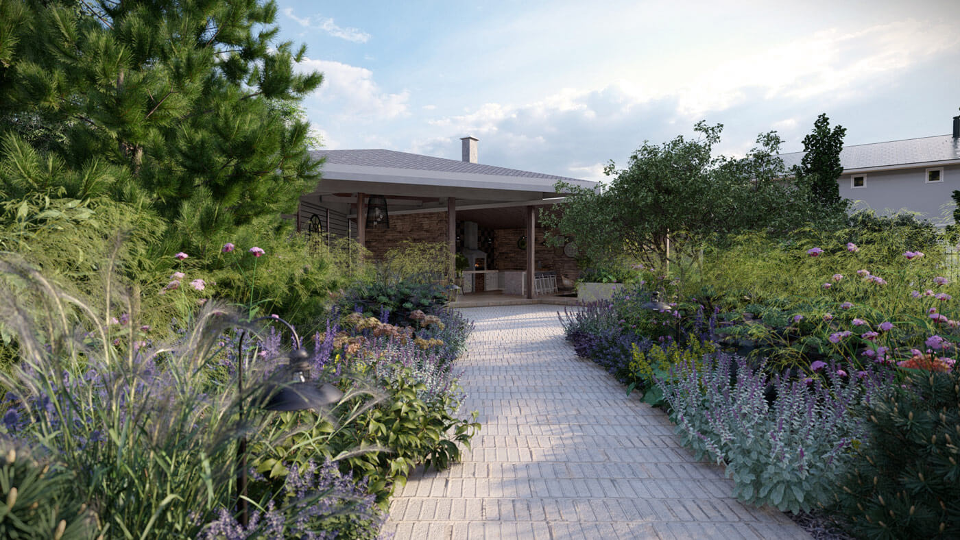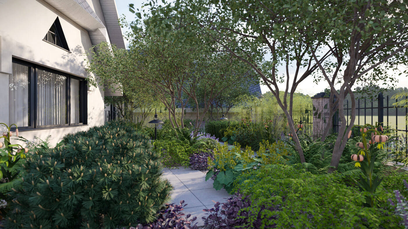 Мы создали гармоничное сочетание различных видов растений, чтобы сад был ярким и красочным в любое время года. Каждый уголок этого сада раскрывает свою историю и удивляет своей красотой. Все растения подобраны, исходя из требований почвы и запроса на малоуходность сада.