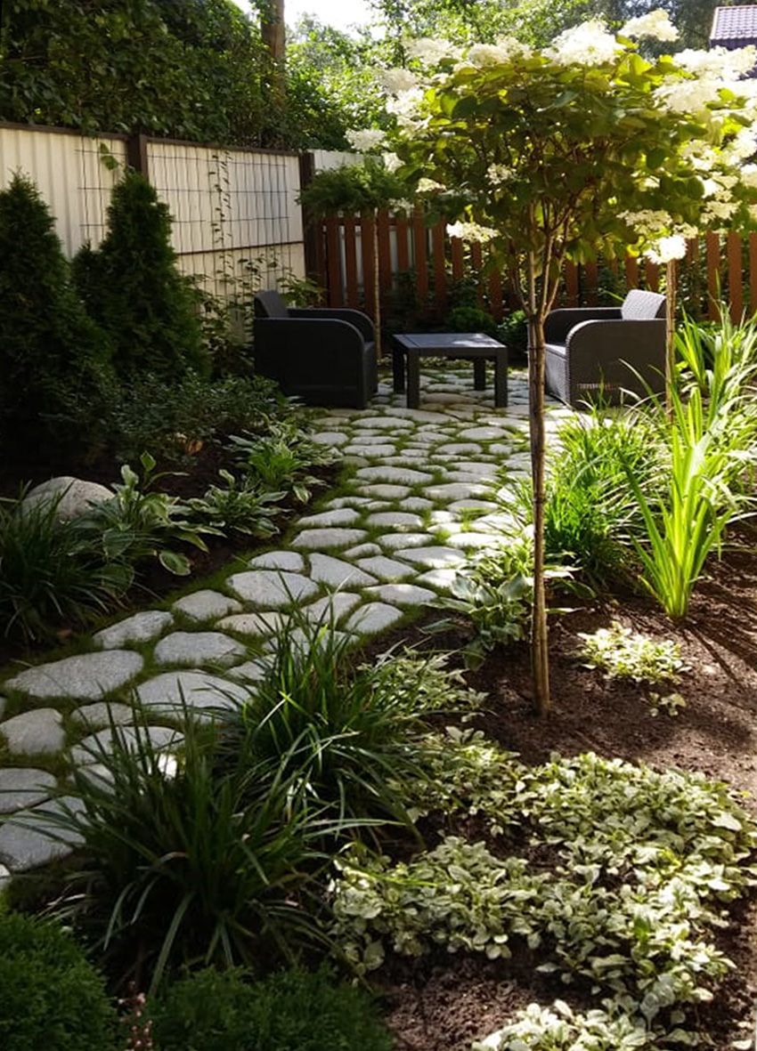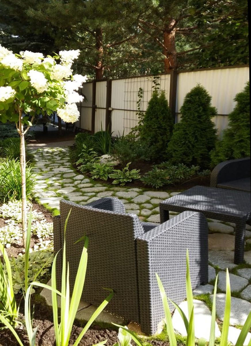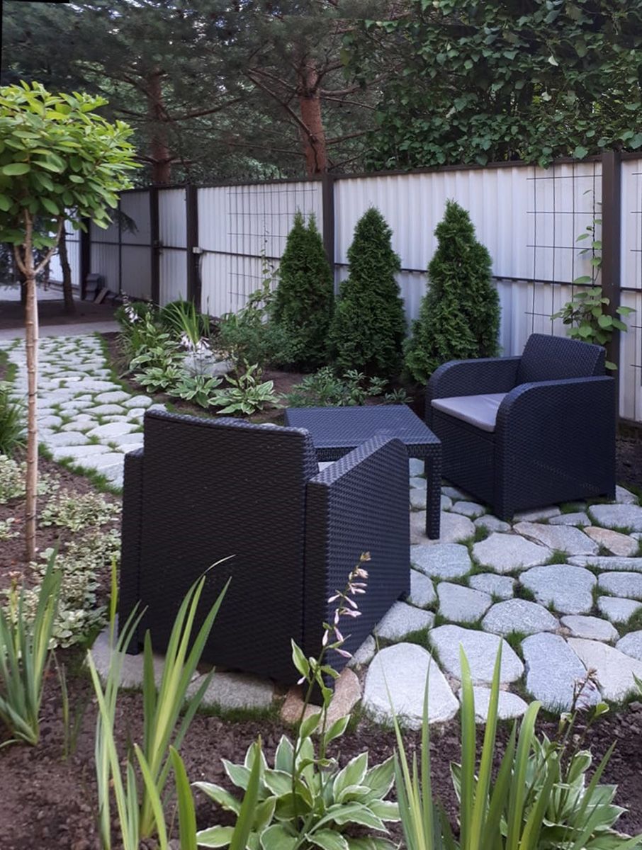 Остается включить воображение и представить, как здорово будет все это смотреться через пару лет, когда актинидия и гортензия черешковая полностью скроют от наших глаз неприглядный забор соседей.