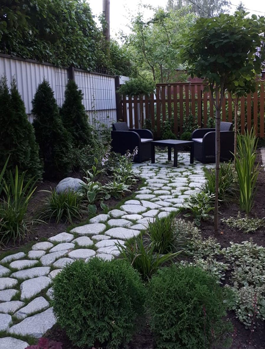 Казалось, что можно сделать на участке земли размером всего 30 кв. м, при этом ограниченном с двух сторон забором, а с третьей — домом? Решить эту задачу мы предложили студентке колледжа архитектуры и строительства, которая проходила практику в нашей студии в марте 2018 года.
