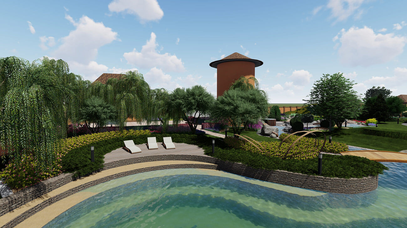 Все заложенные инженерные системы: дренирование почвы, автополив — минимизируют время ухода и дают возможность наслаждаться пейзажами сада, получая силу всех четырех стихий природы.