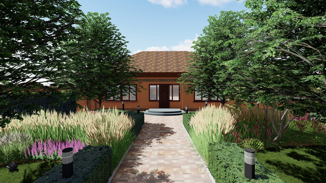 1. Воздух. К этой зоне относится входная часть, которая встречает гостей и приглашает к прогулке. Регулярная планировка, сделана таким образом, чтобы было удобно добраться до любой части сада. Стихию воздуха усиливают цветники из злаковых трав, которые оживляются при легком порыве ветра, а также открытые пространства газона.