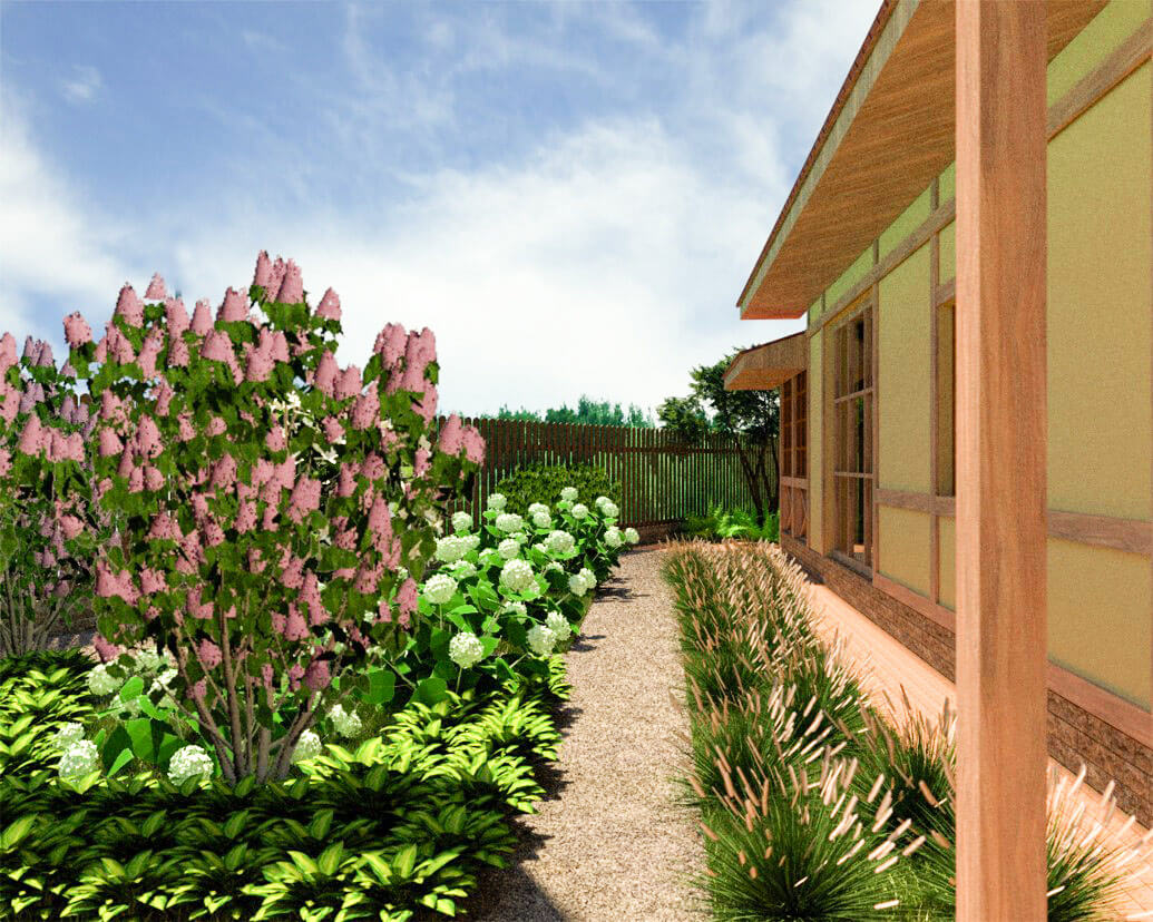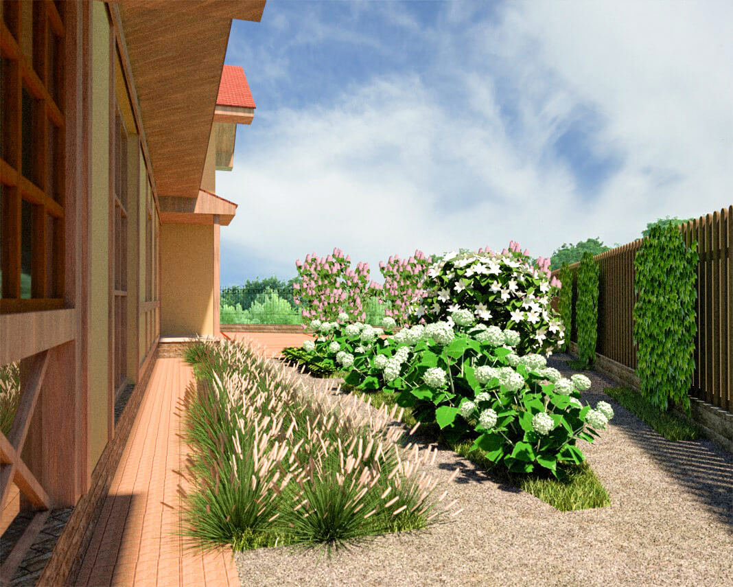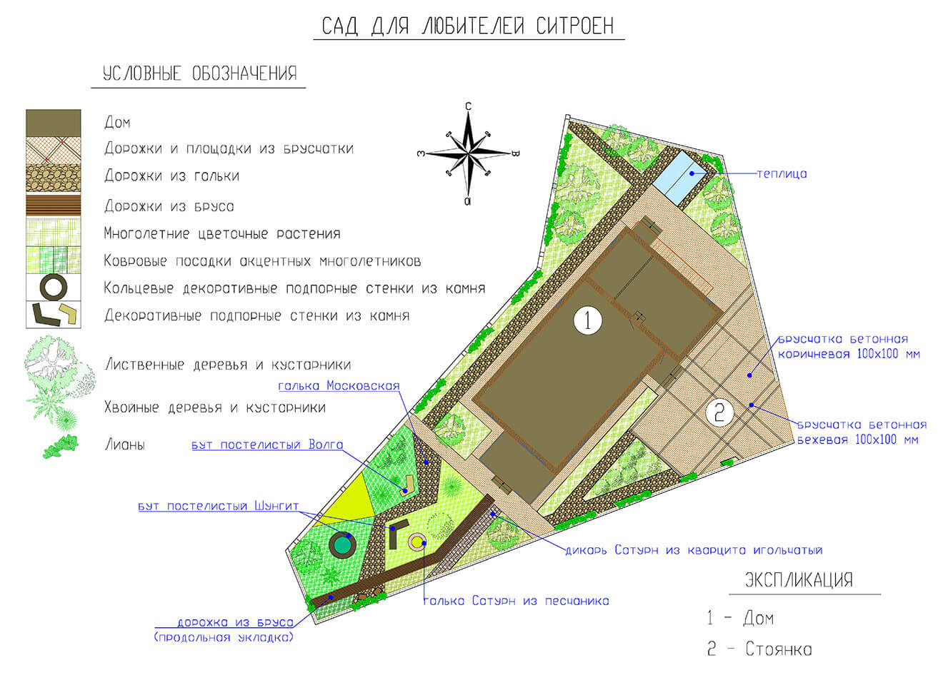 Владельцы участка являются большими поклонниками автомобилей марки Ситроен, и при проектировании сада мы решили воспользоваться данным фактом и создать сад для любителей автомобилей Ситроен.