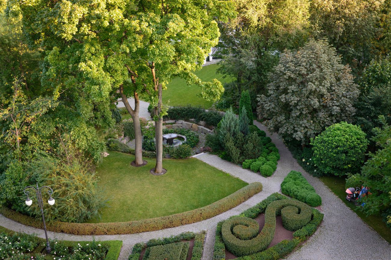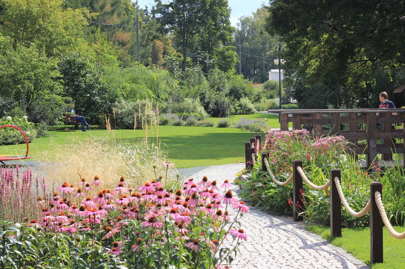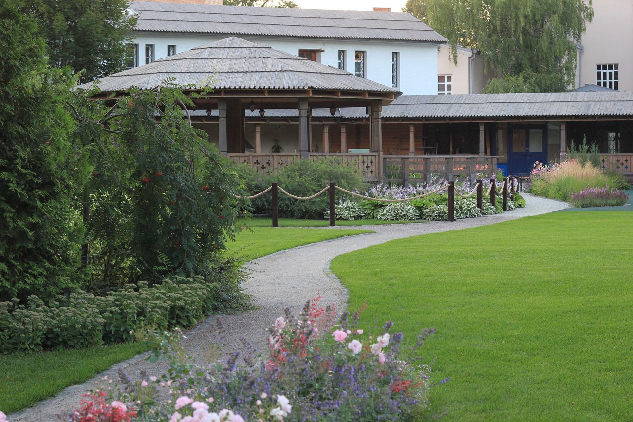 Замшелые дорожки, деревянные лавочки и скамейки, легкий аромат цветов и кустарников, наполняющий сад на протяжении всего сезона, — все отражает идею «нерукотворного» сада.