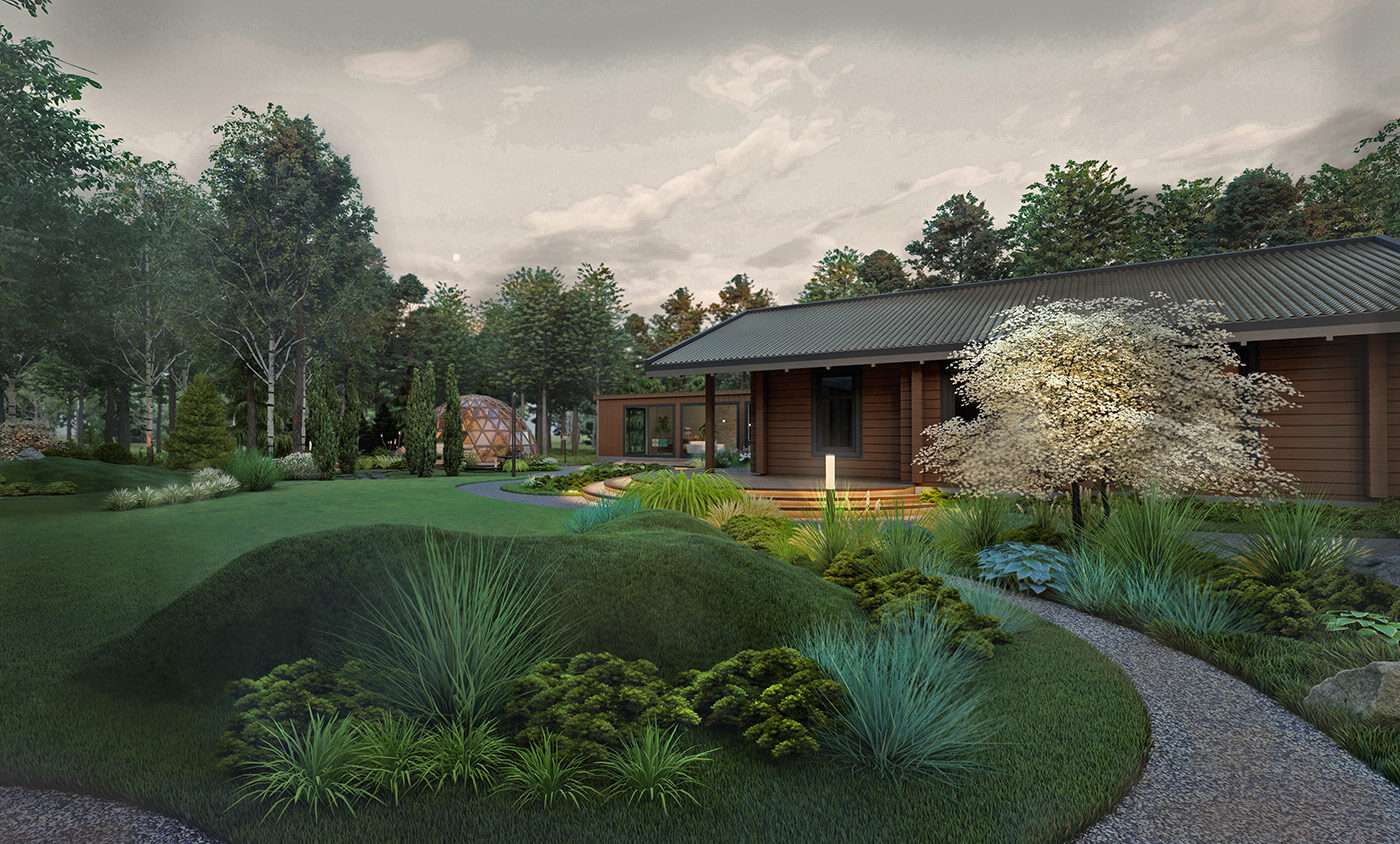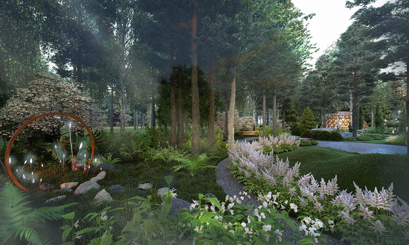 Основная задача проекта — создание сада, который максимально соответствует естественному, природному ландшафту с мягкой, невидимой границей между природой и человеком, с возможностью погрузиться в лесное пространство природы.