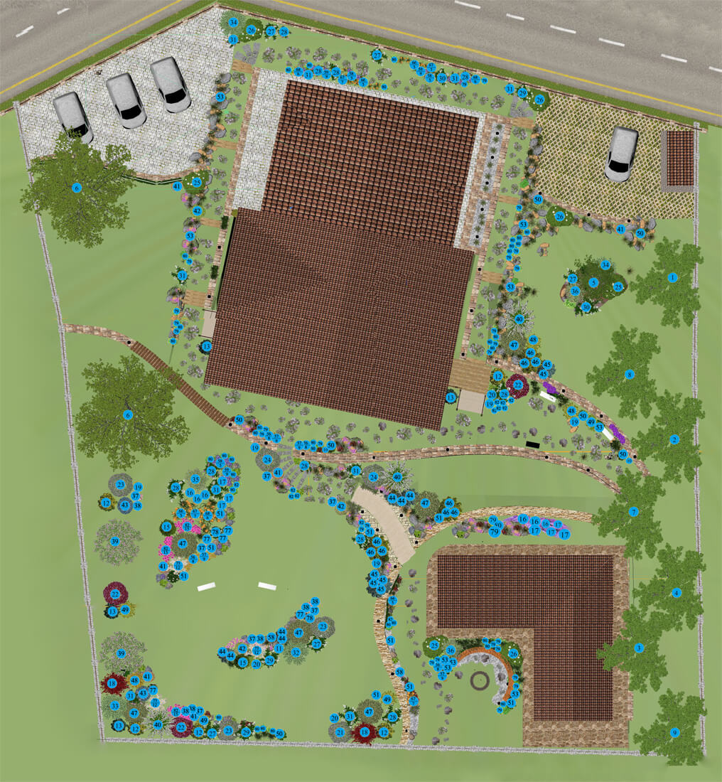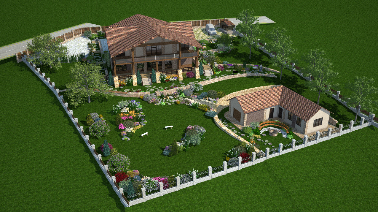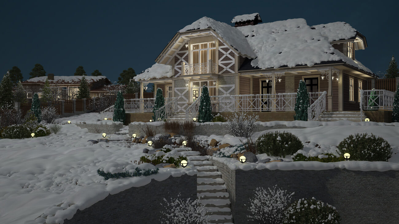 Бонусом для клиента мы сделали дополнительную визуализацию участка. Ведь для людей, которые постоянно проживают на территории своего дома и сада, важно, насколько их окружение меняется и как выглядит не только в пик цветения и благоухания, но и, например, зимой.