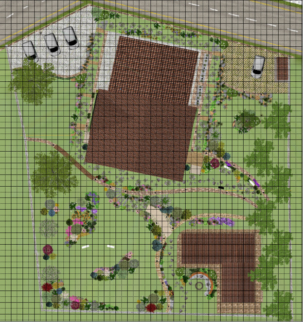 На начале этапа проектирования на участке не было ничего, кроме строящегося дома. И основные задачи, которые поставил перед нами клиент, были следующие: минимизировать применение бетонных материалов и конструкций; распланировать насаждения таким образом, чтобы визуально скорректировать расположение дома относительно границ участка (при строительстве возникли расхождения с планами и было очевидно, что угол обзора из окон дома в будущем будет направлен на соседний участок); предложить месторасположение бани с хозяйственной постройкой; спроектировать удобные и безопасные для перемещения лестницы. В общем, сделать все для комфортного проживания.