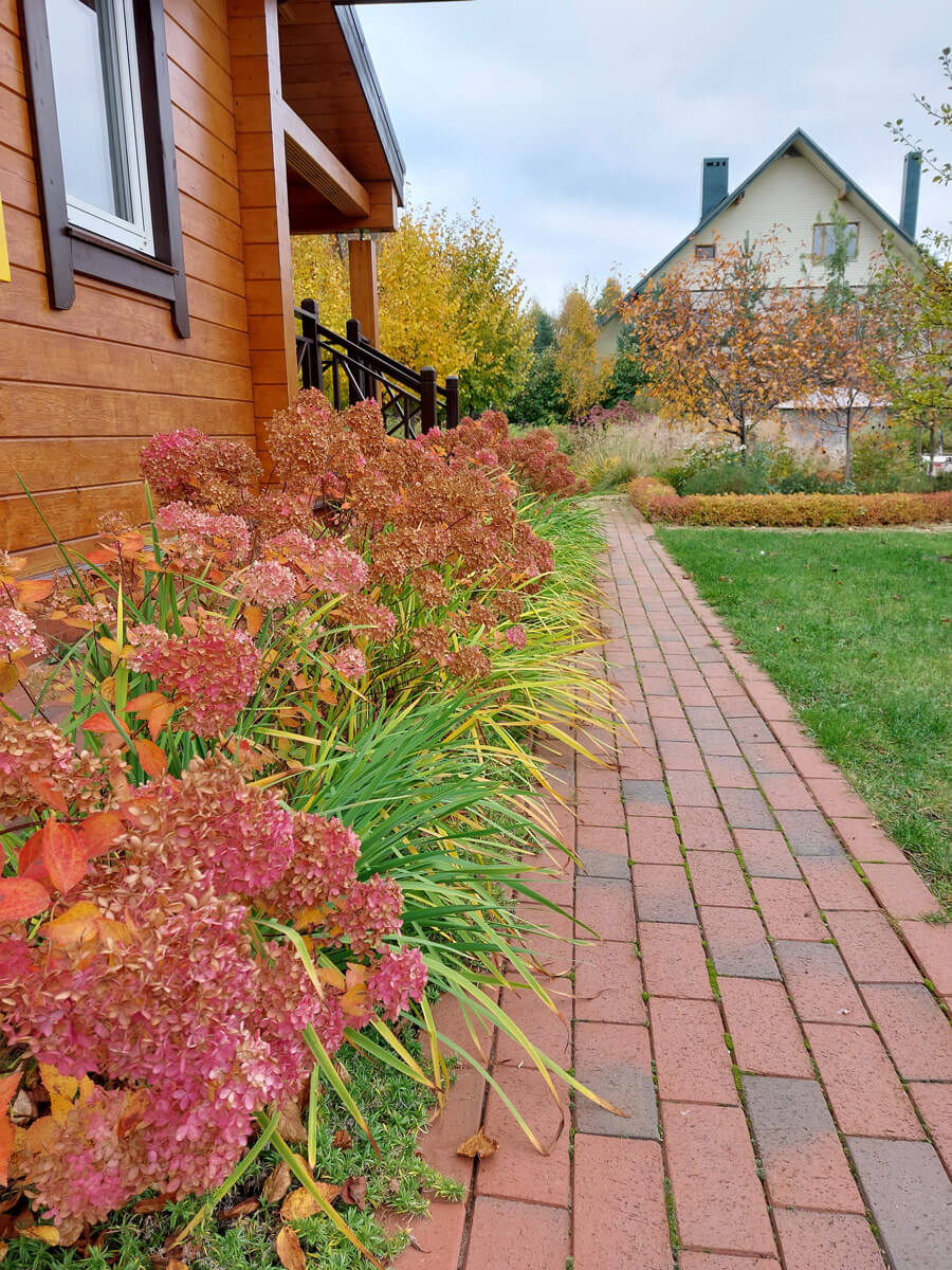 Фиолетовая и Розовая страна выражены через массивы фиолетовых и розовых цветов: Тимьян ранний, Котовник фассена, Эхинацея пурпурная, Астильба Арендса, и, конечно, декоративные злаки, которые передают образ Ветра.